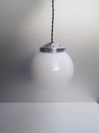 Suspension vintage - Globe opaline blanche - 1950