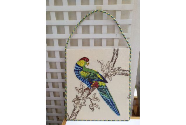 Tableau tapisserie sur bois motif perroquet