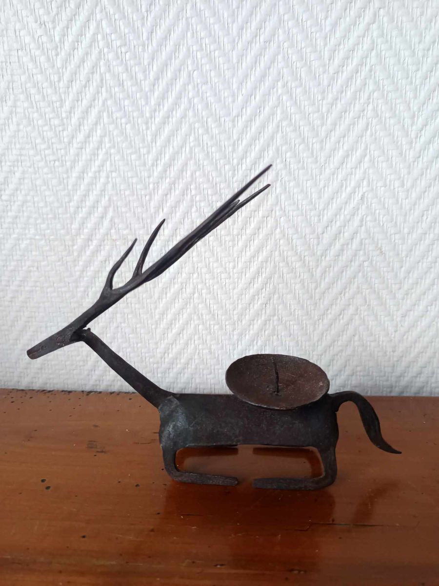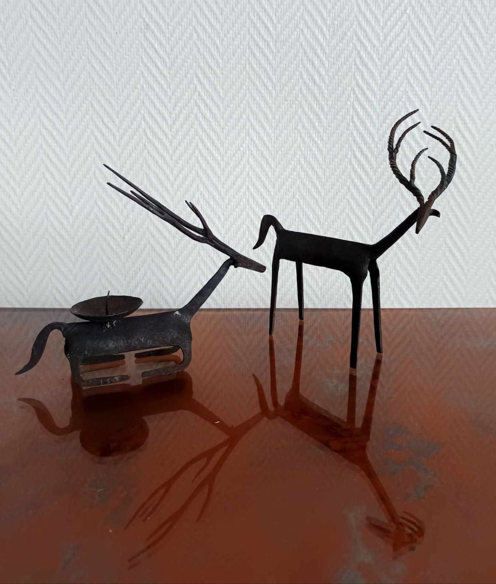 Bougeoirs cerfs en métal style brutaliste