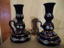 Paire de bougeoirs, travail artisanal vintage Belge