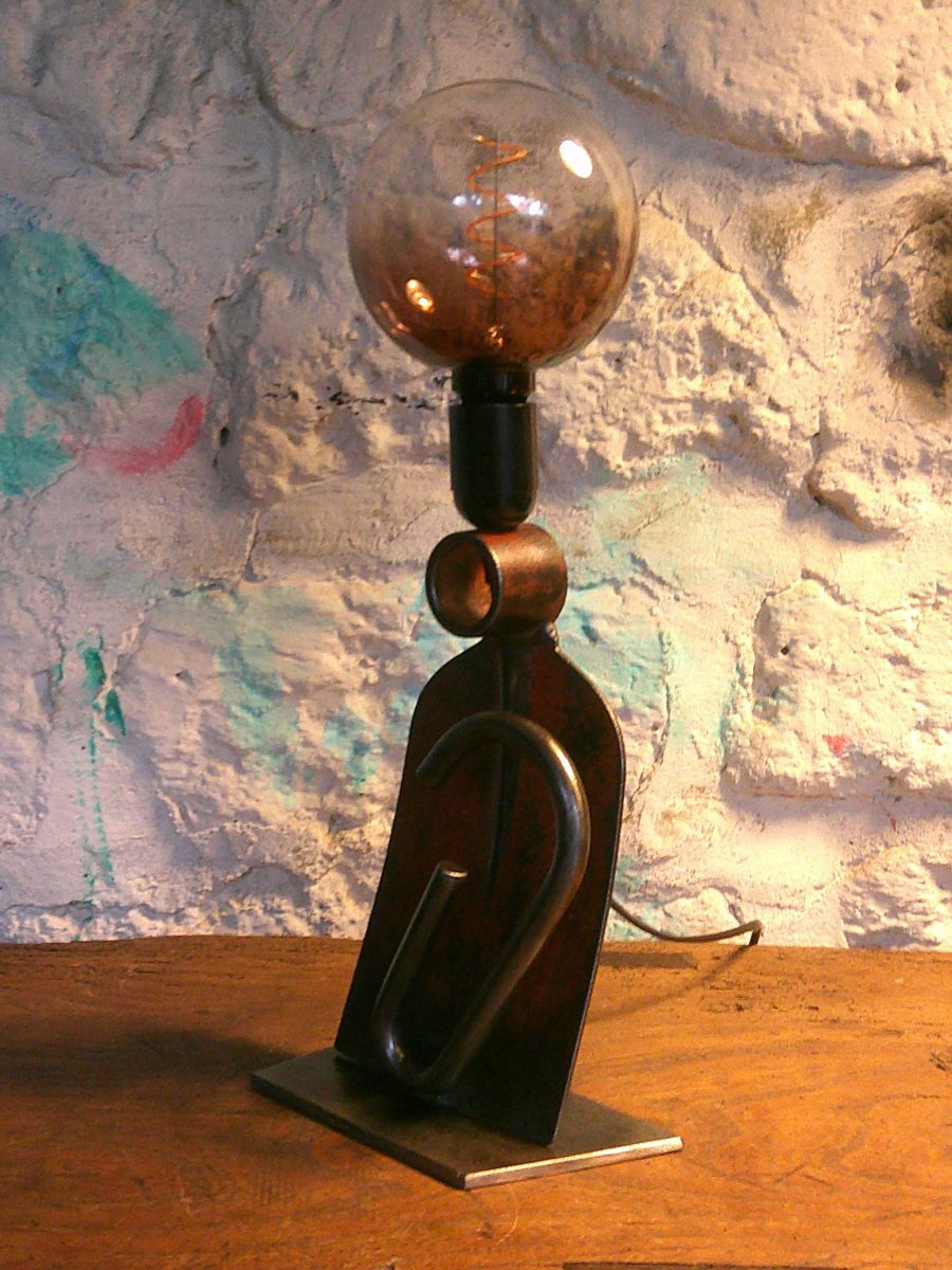 Cette lampe sculpture est une pièce unique frappée a mes initiales et l'année de création .