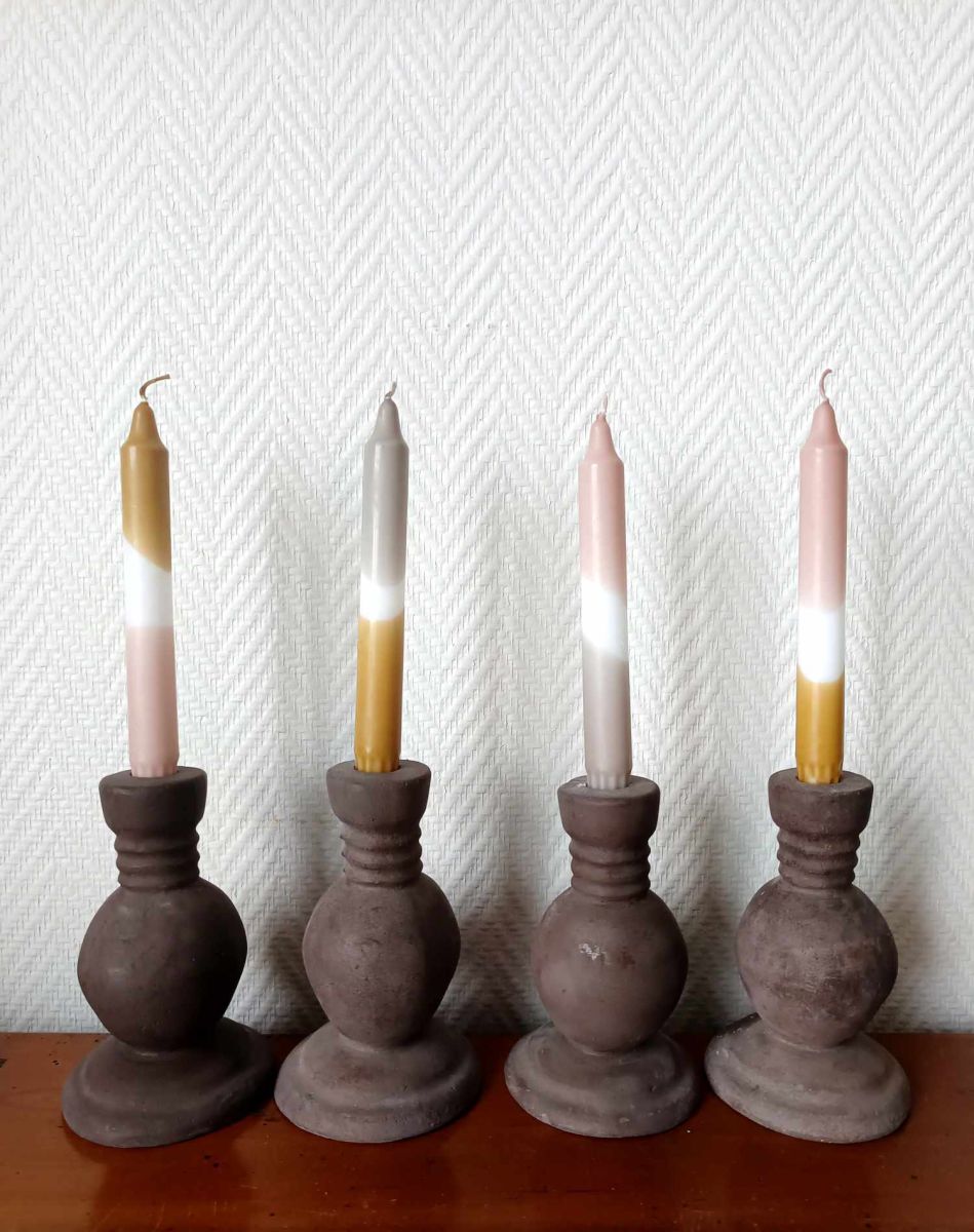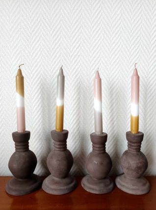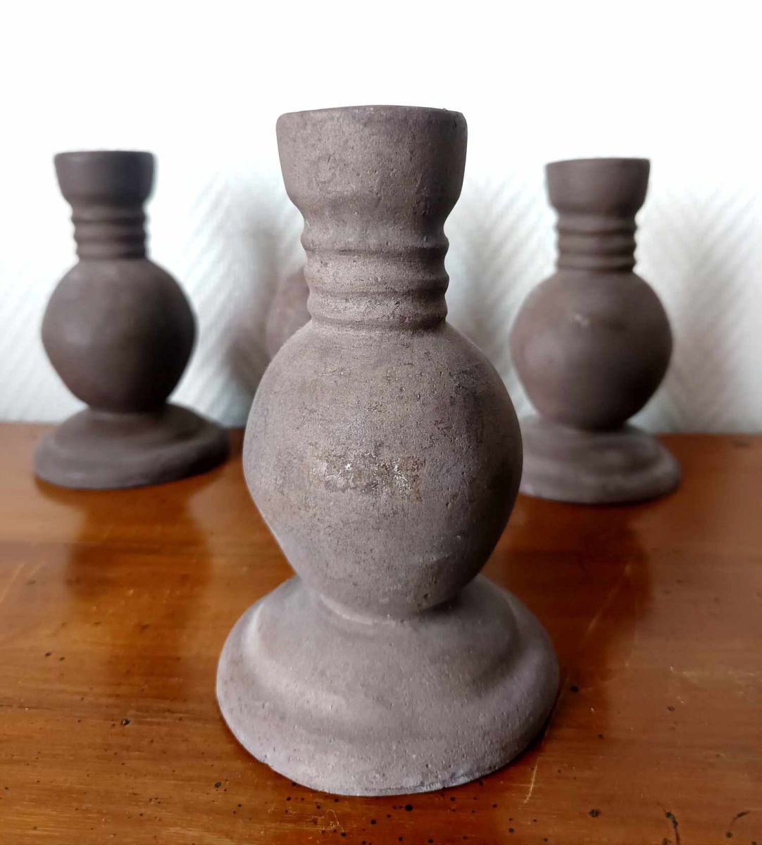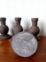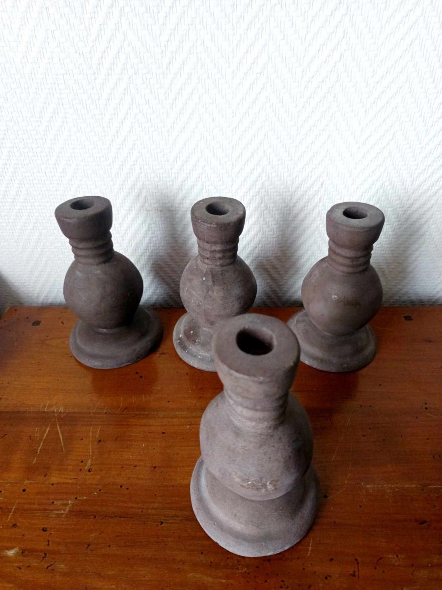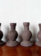Ensemble de quatre bougeoirs artisanaux, travail vintage en céramique .
