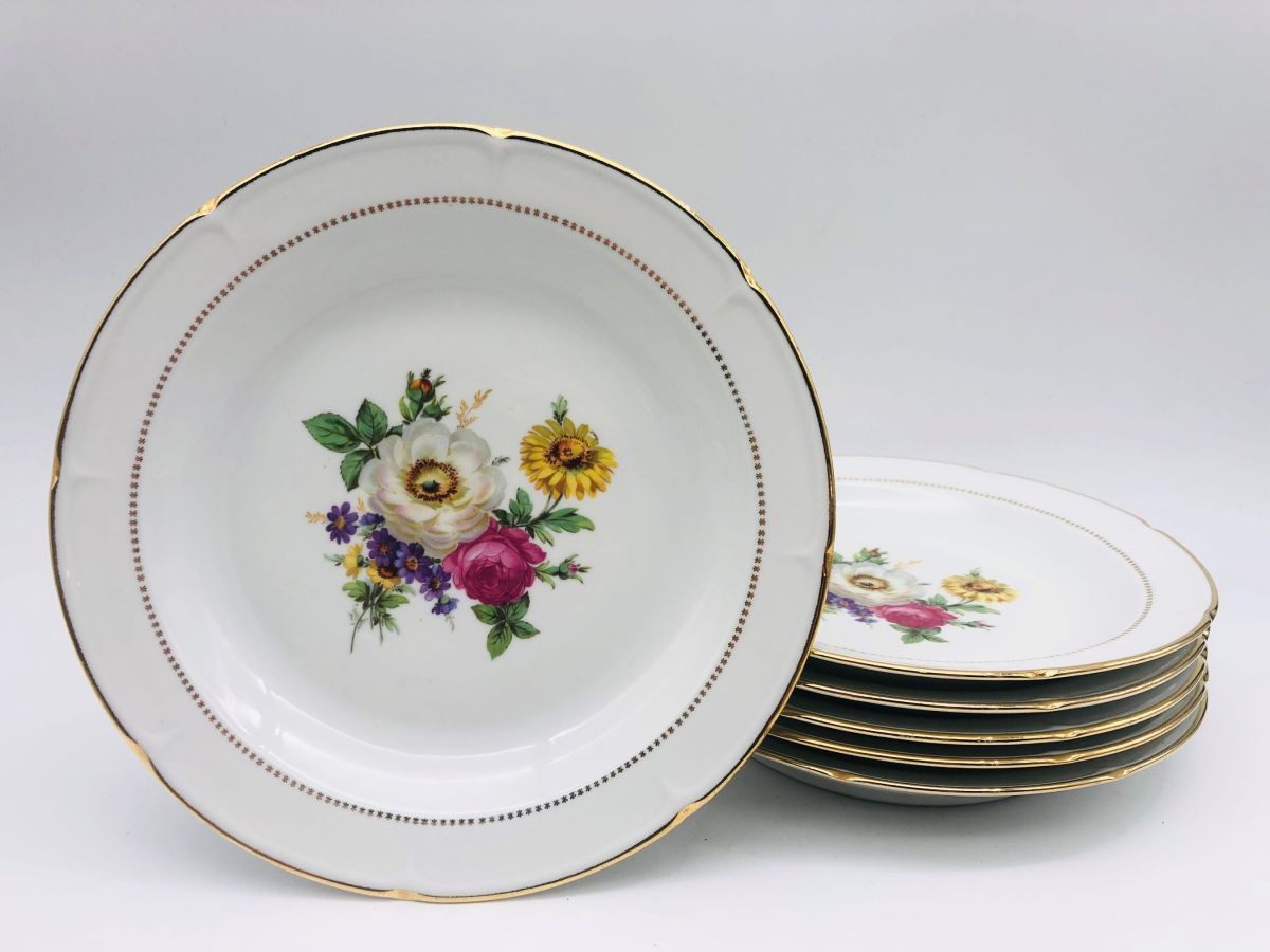 6 Assiettes Creuses. En porcelaine, pâte et émaux de Limoges