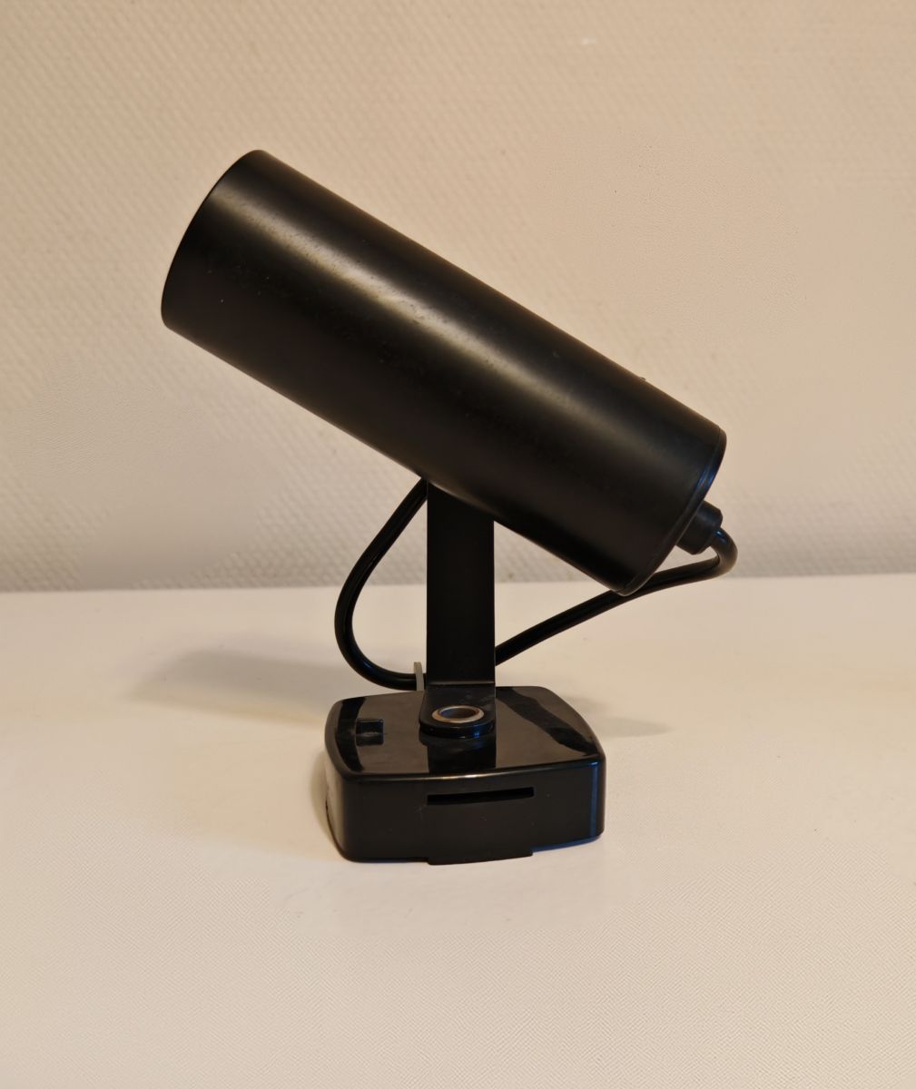 H minimum = 14 cm L spot = 15 cm base = 7 cm x 7 cm poids = 0,320 kg