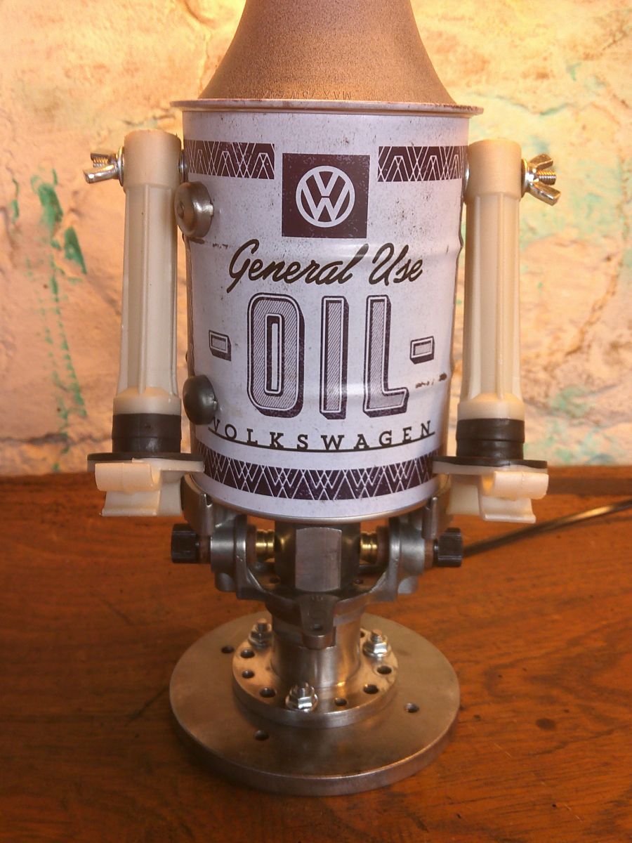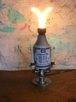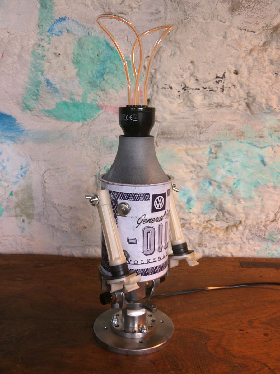 Lampe robot réalisée a partir d'une boite métallique " VOLKSWAGEN " .