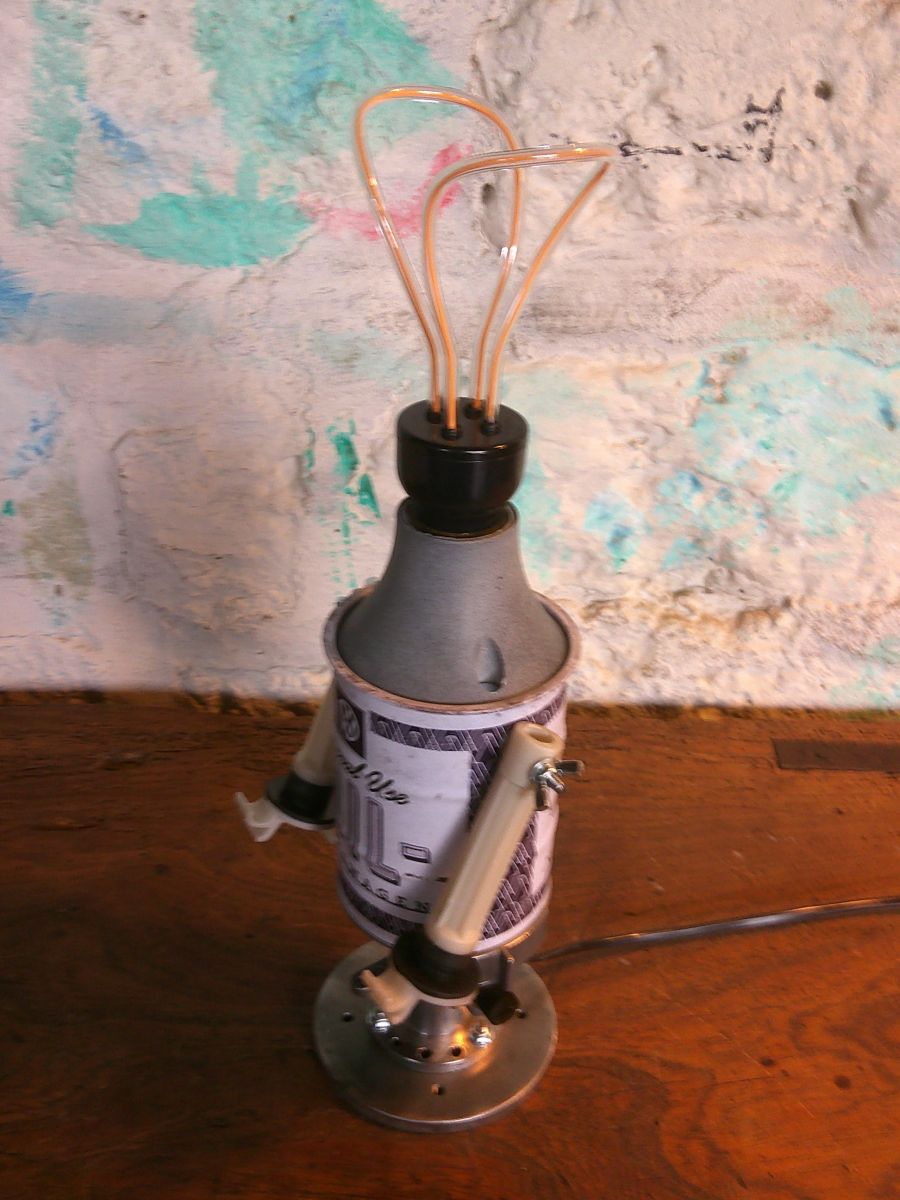 Cette lampe robot est une pièce unique frappée a mes initiales et l'année de création .