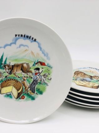 6 Assiettes à fromage en porcelaine.