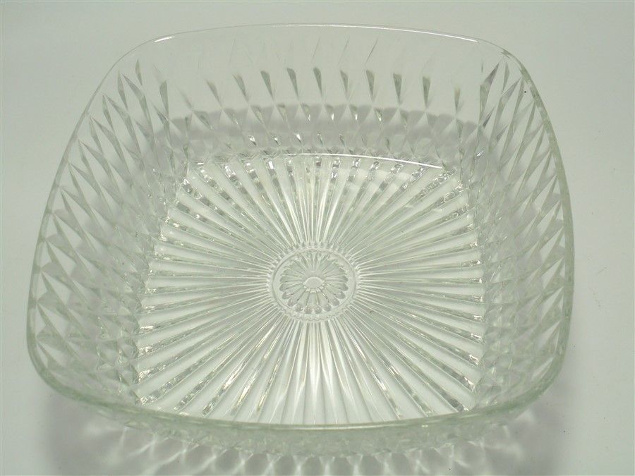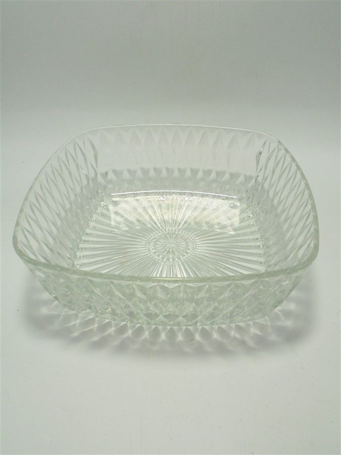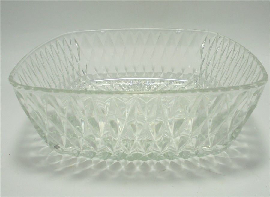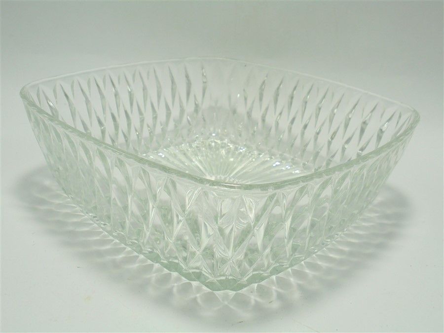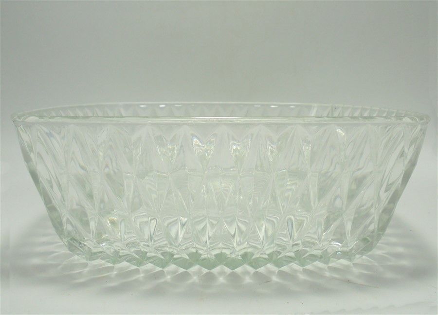 Saladier vintage en verre transparent, motif en relief en forme de losanges.