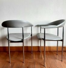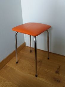 Chaise en formica vert clair des années 50, entièrement nettoyée, traces d’usage sur le formica et manque de peinture sur la bande de champ (voir photos) mais cela lui confère un charme fou, hauteur totale 76cm, hauteur assise 45cm, assise 35x35cm.