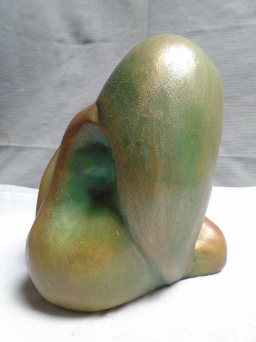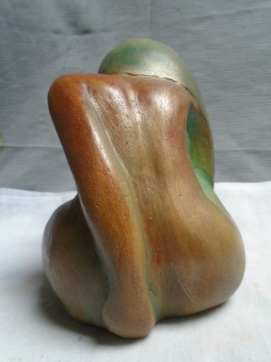 Femme assise stylisée chevelure de côté Terre cuite patinée