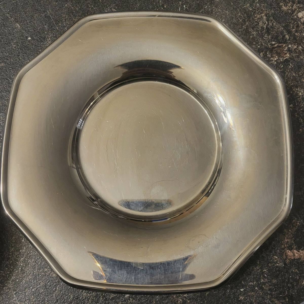 Ancienne saucière sur plateau modèle Marigny de Létang et Rémy, inox 18/10.