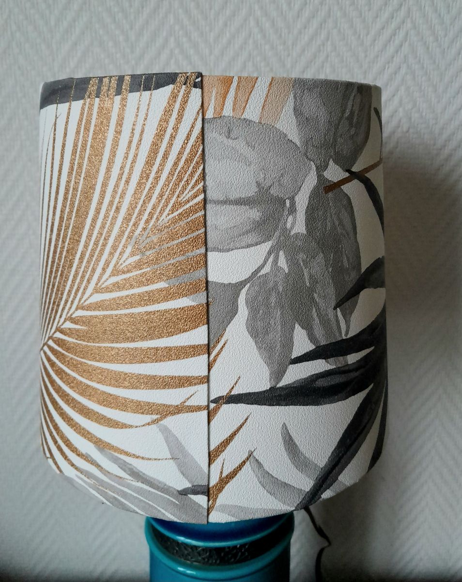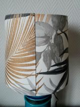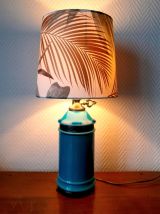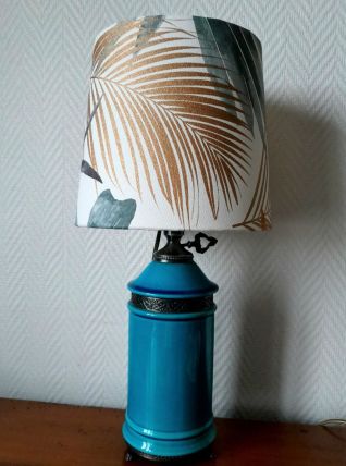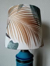 Lampe en céramique bleu pieds griffes abat-jour jungle