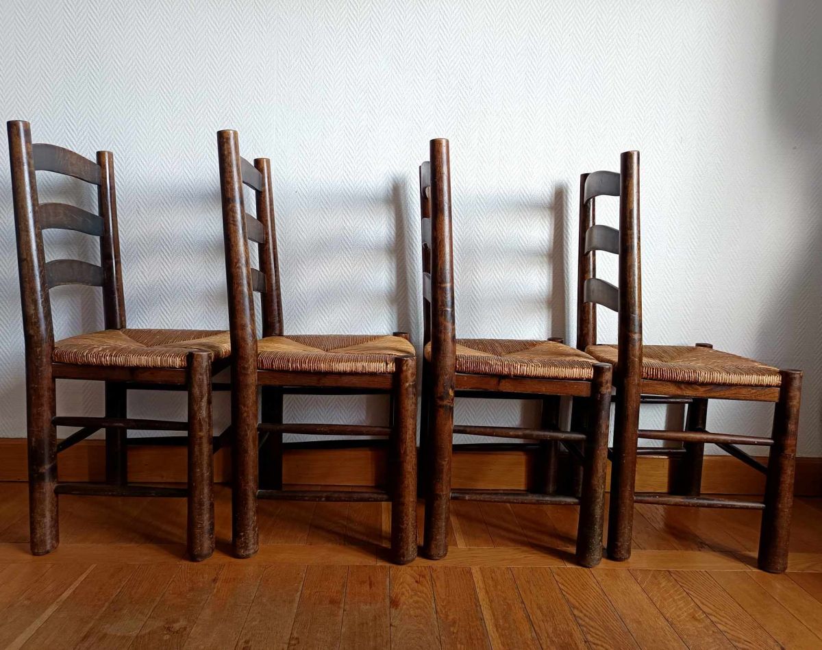 Suite de quatre chaises paillées de Georges Robert, travail brutalité vintage vers 1950/1960.