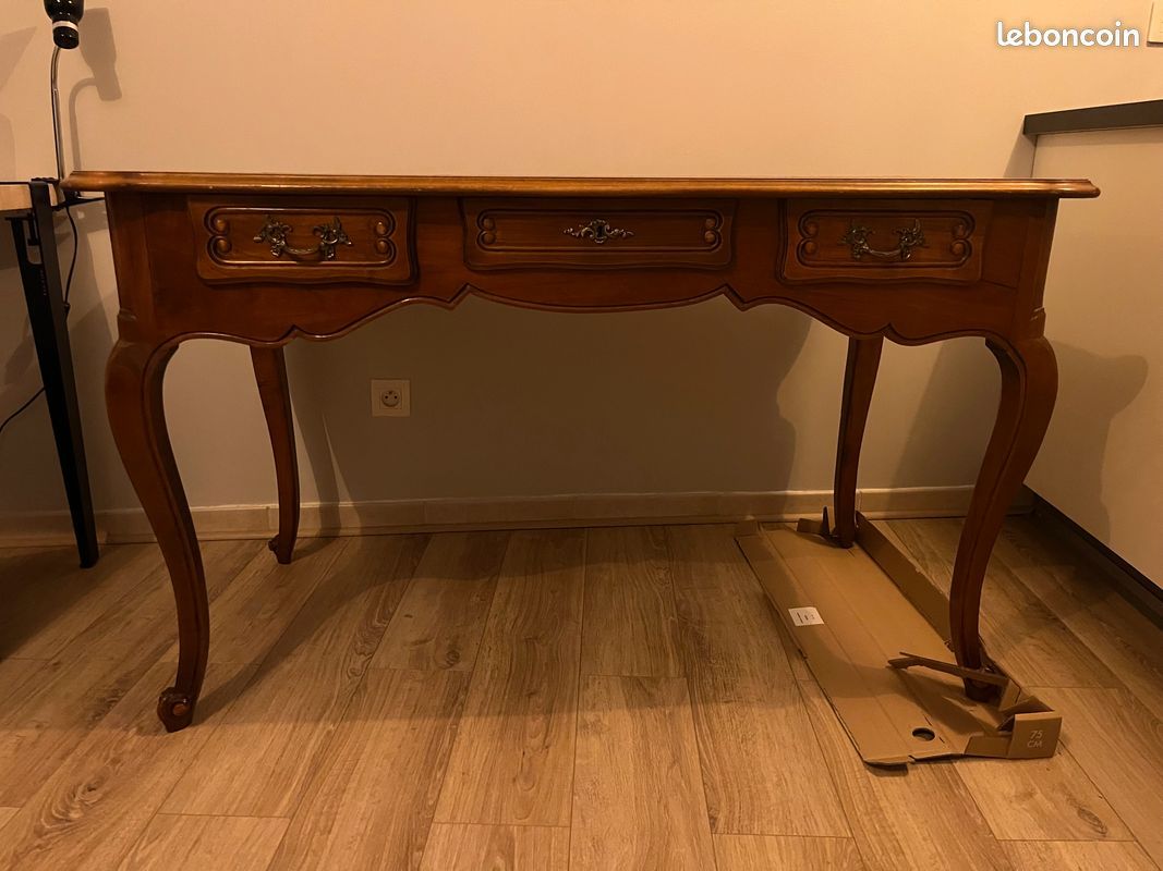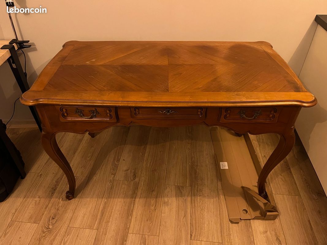 Bureau style Louis XV en merisier massif avec 3 tiroirs à clé.