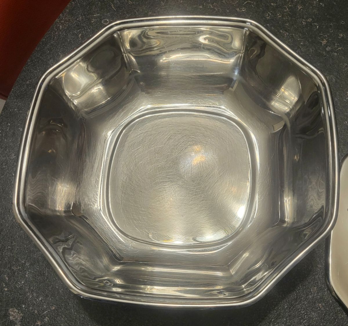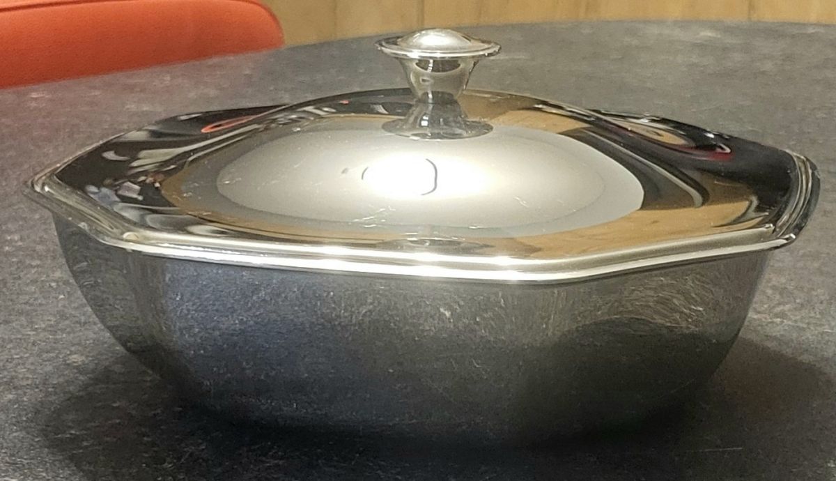 Ancienne soupière (ou légumier) Létang et Rémy, modèle Marigny Miroir, en inox 18/10.