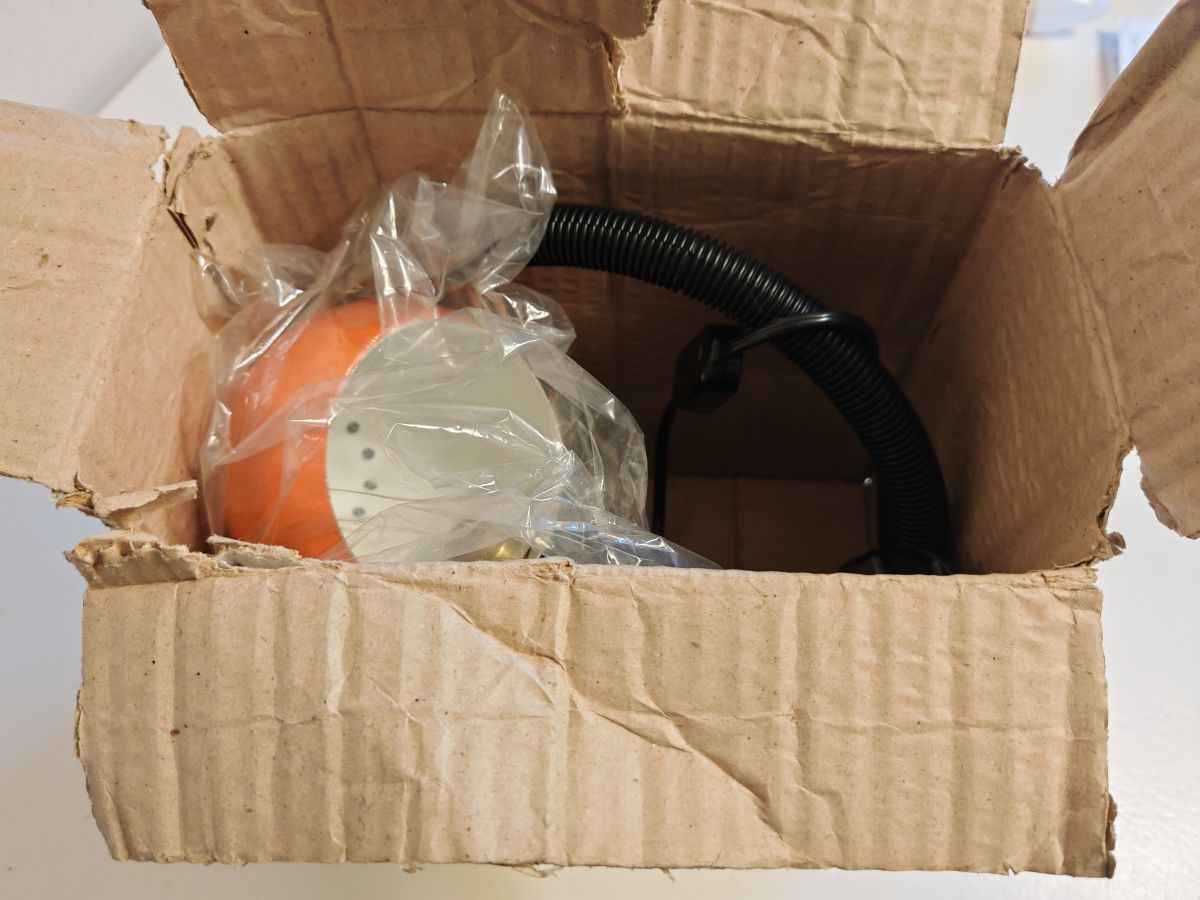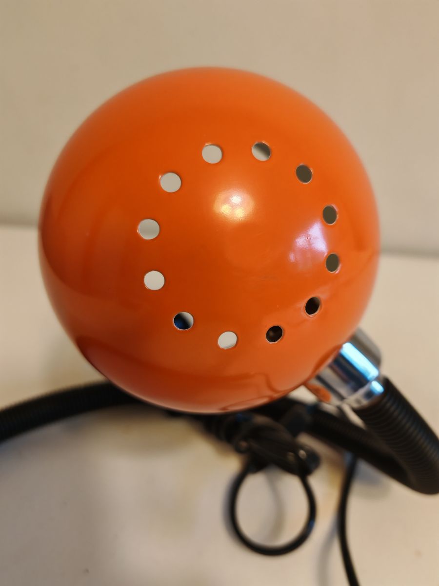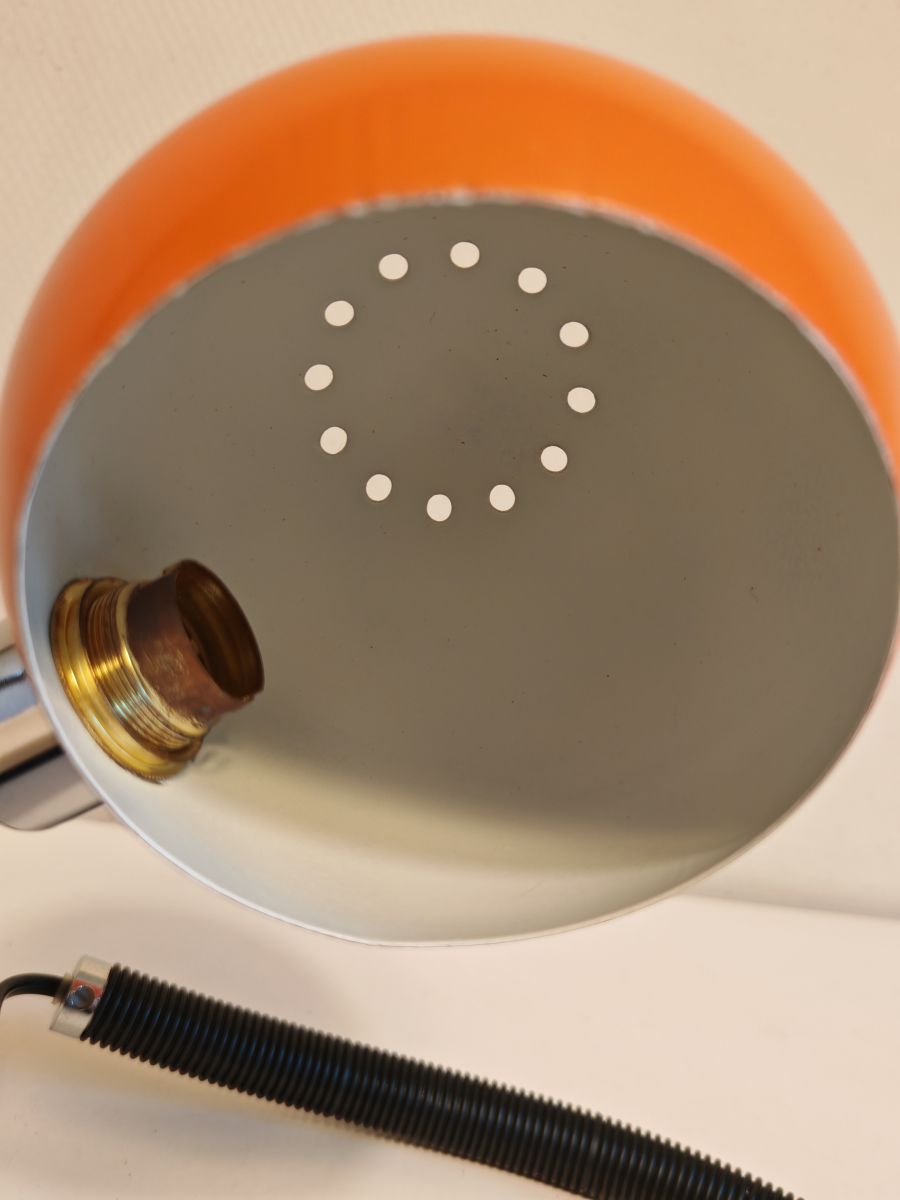 Aucune trace sur le réflecteur laqué orange. Elle a sa prise d'origine qui nécessite un adaptateur fourni.