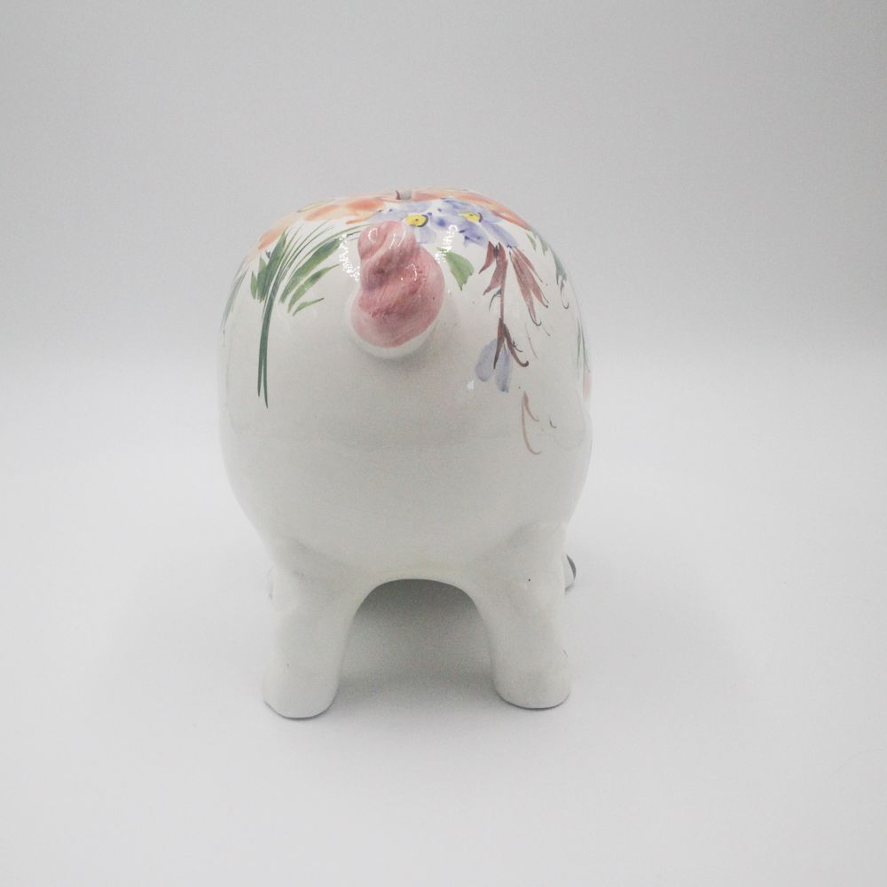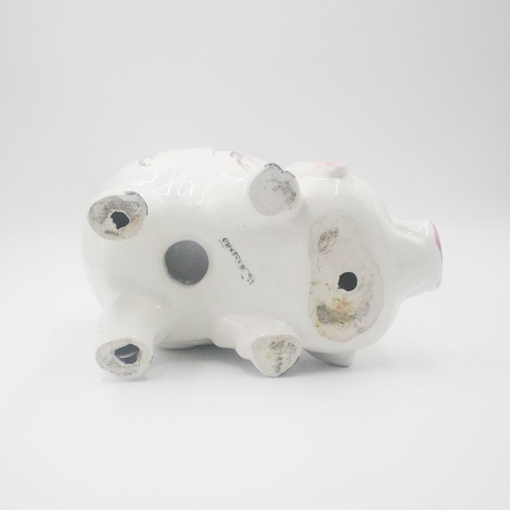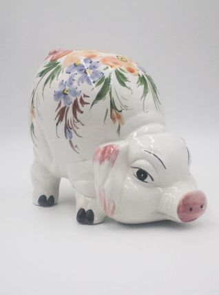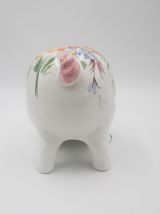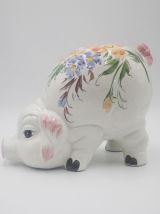 Grosse tirelire cochon en faïence produite dans les années 80.