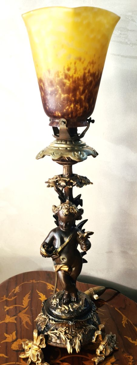 lampe napoléon 3 regule patine bronze 48x16 cm pate de verre elec ok