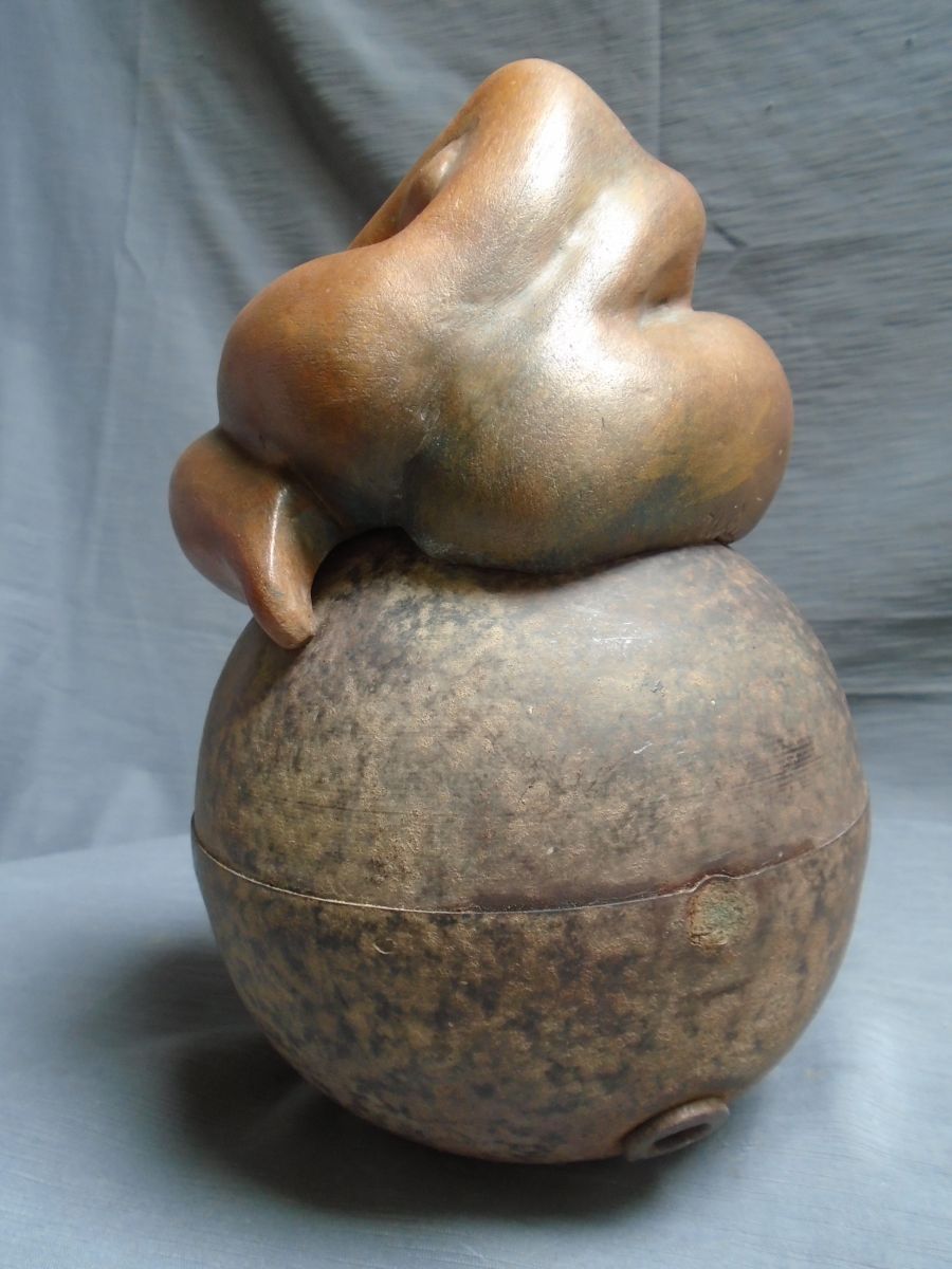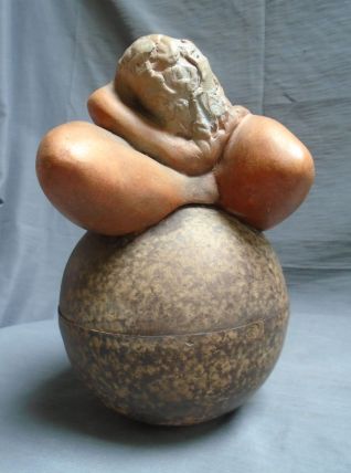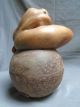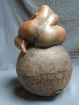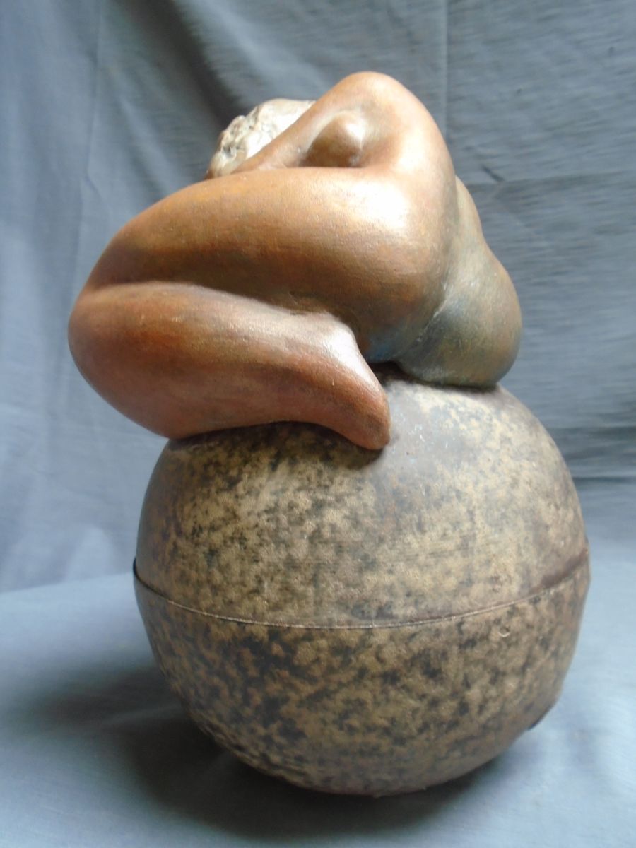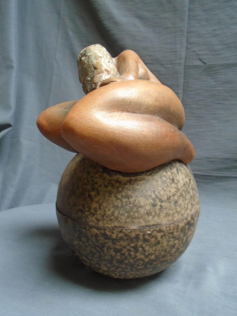 Sculpture en terre cuite Femme en repli sur sphère métal