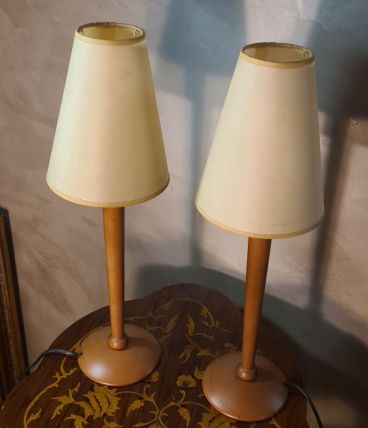 Paire lampe de chevet design scandinave en bois tourné elec ok 52x15