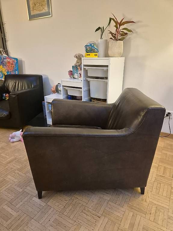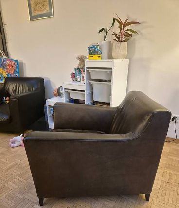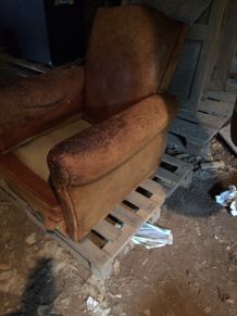 Fauteuil cuir véritable CINNA rive droite vintage