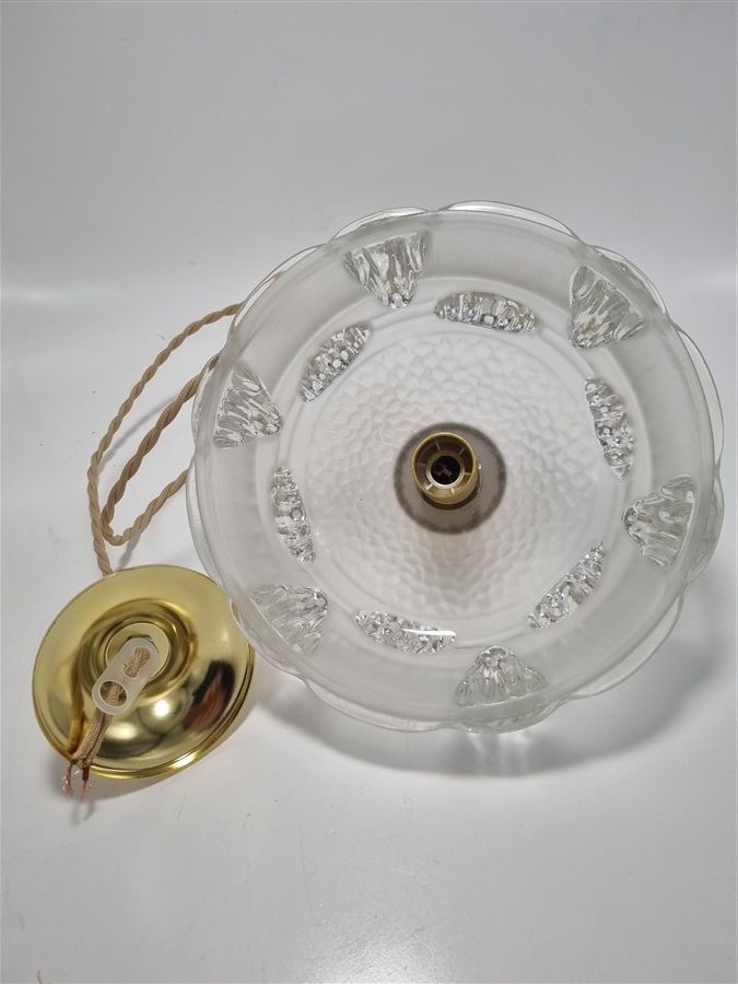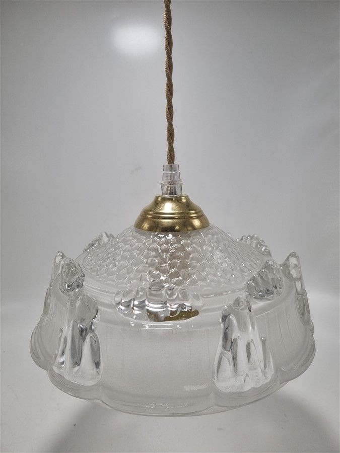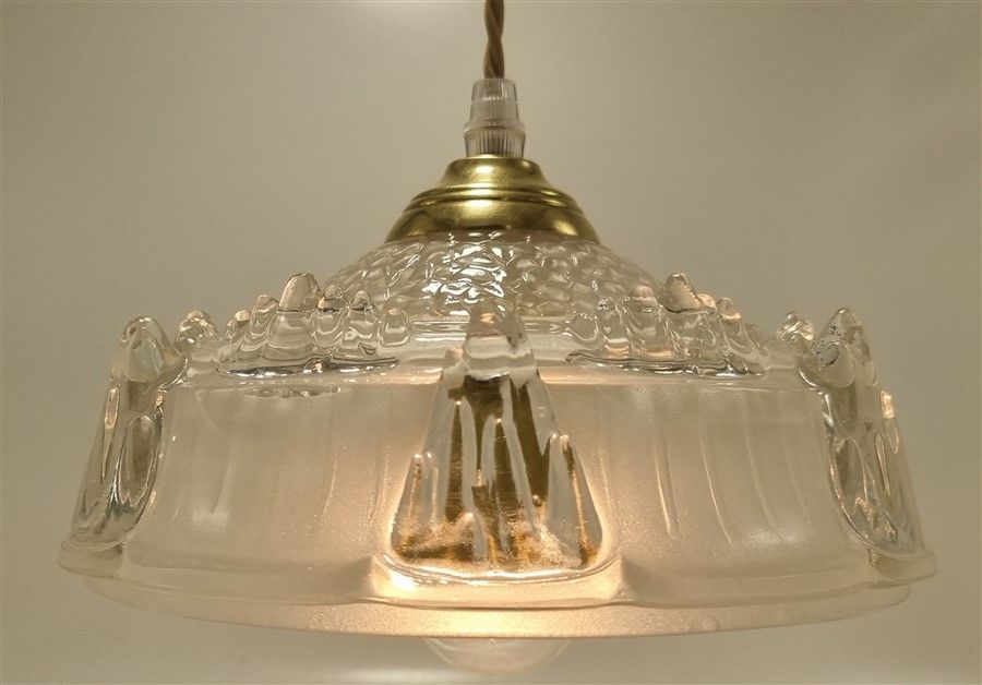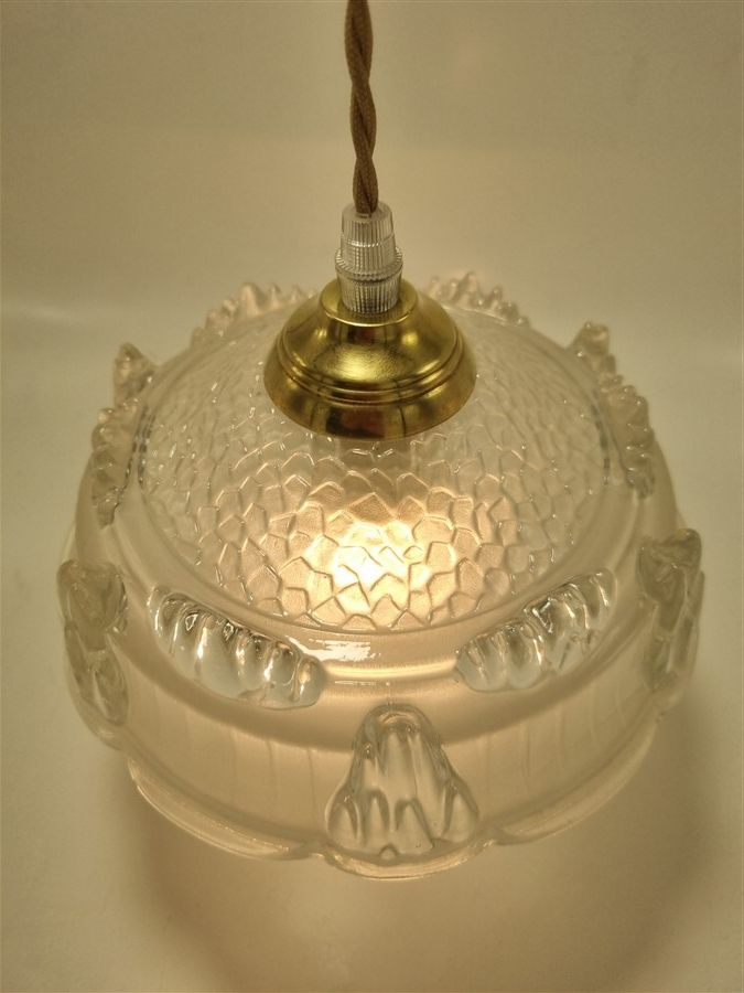 Suspension créée à partir d'un globe issu d'un ancien lustre de la marque Ezan, .