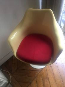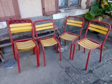 Tabouret en formica des années 60, quelques traces d’usage et légers éclats, très solide et stable, pieds en métal chromé, belle couleur, hauteur 45cm, assise 27x27cm.