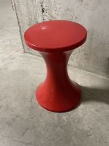 Tabouret Tam Tam de couleur rouge, original des années 70, designé par Henry Massonnet et manufacturé par la STAMP à Nurieux(01), estampillé Made in France, hauteur 44cm, diamètre assise 30cm, quelques traces d’usage (voir photos).
