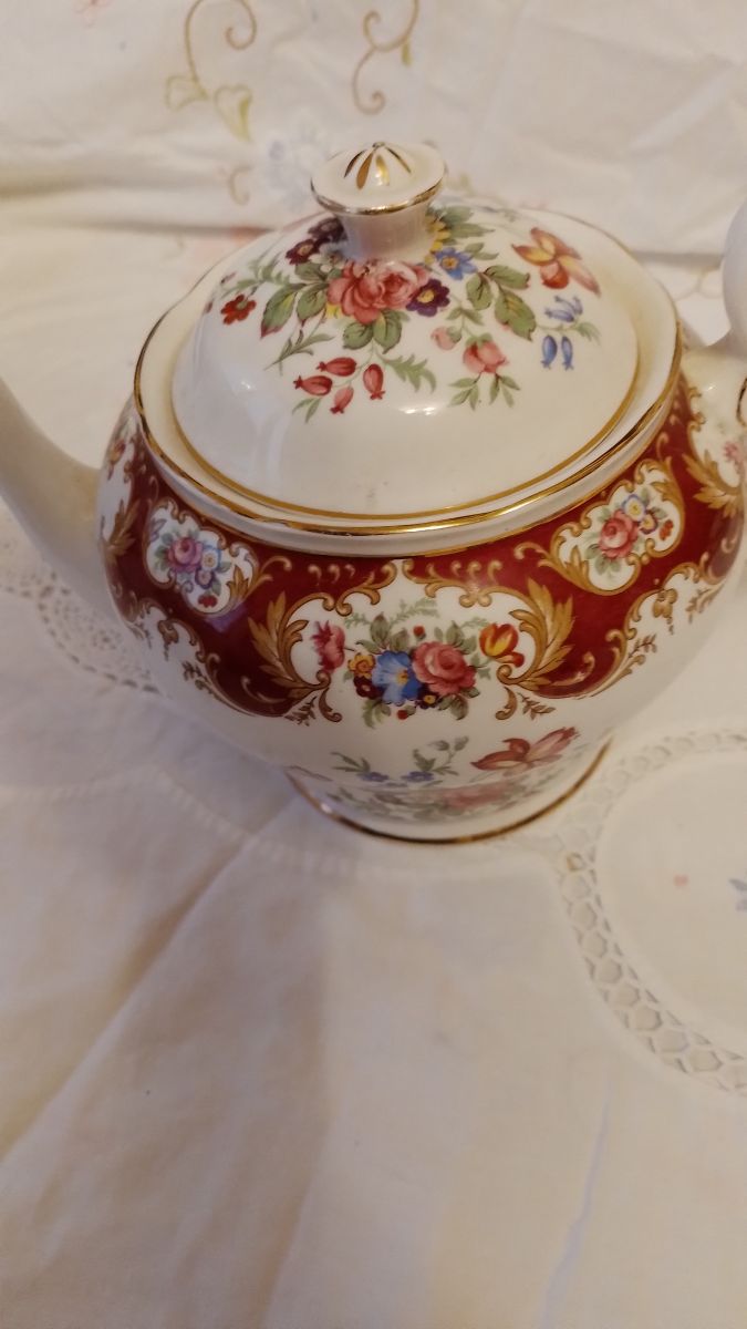 Cette magnifique Théière grand format, Royal Standard Lady Fayre (fabriqué au début des années 60) est un incontournable pour tout collectionneur ou amateur de porcelaine fine. Le motif floral complexe en multicolore ajoute une touche d’élégance à n’importe quelle heure du thé.