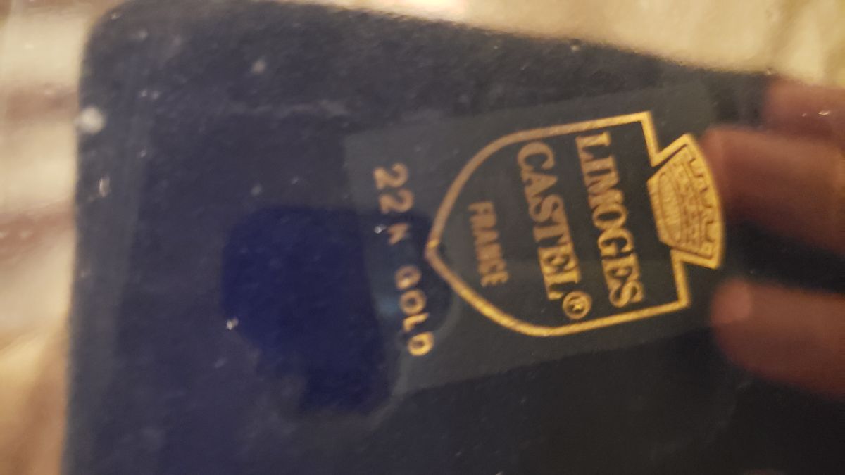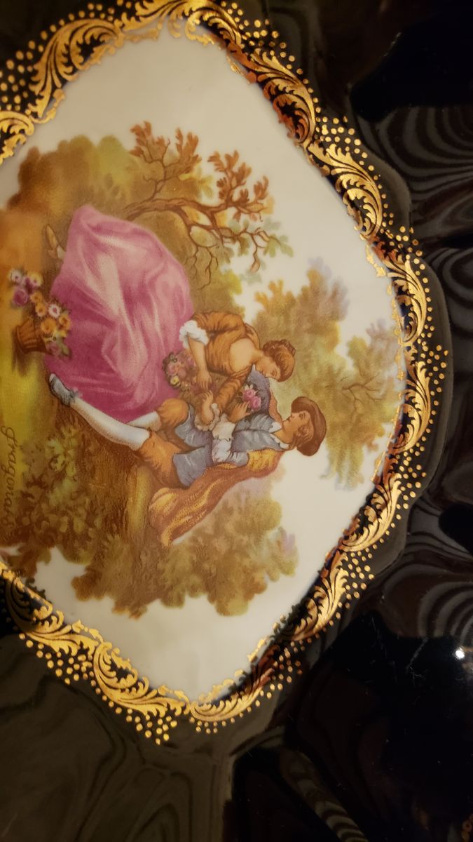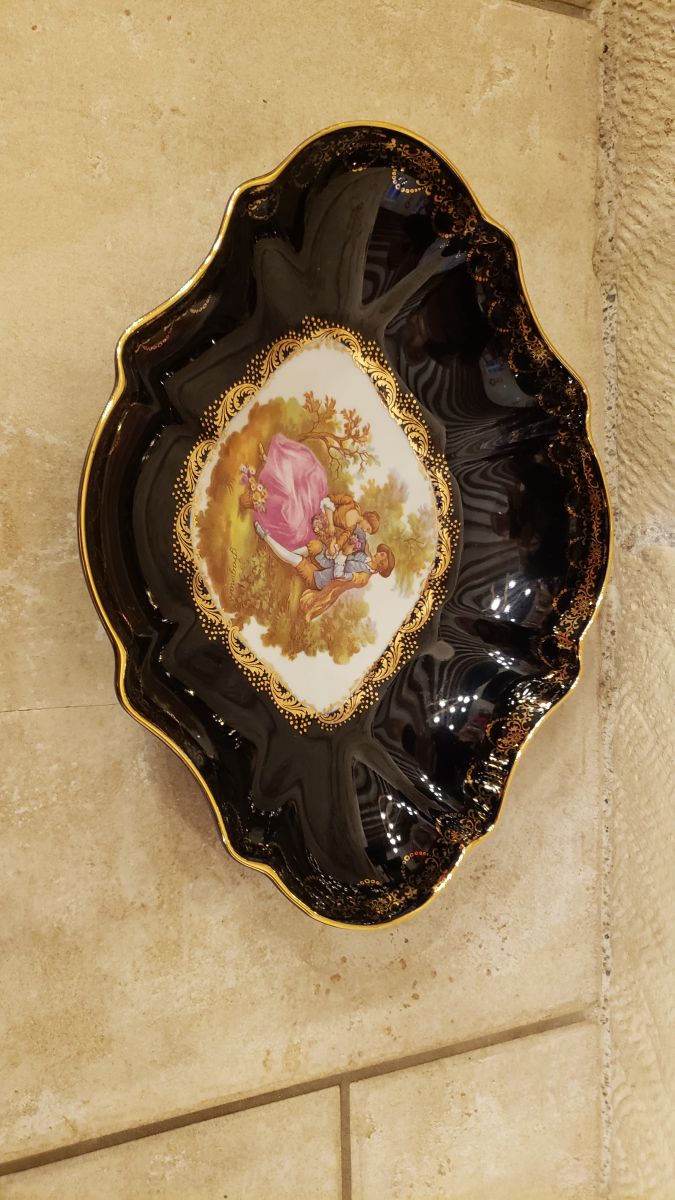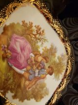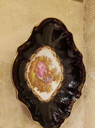 Magnifique plat creux bleu cobalt décor Fragonard et or 22K. Il est estampillé.