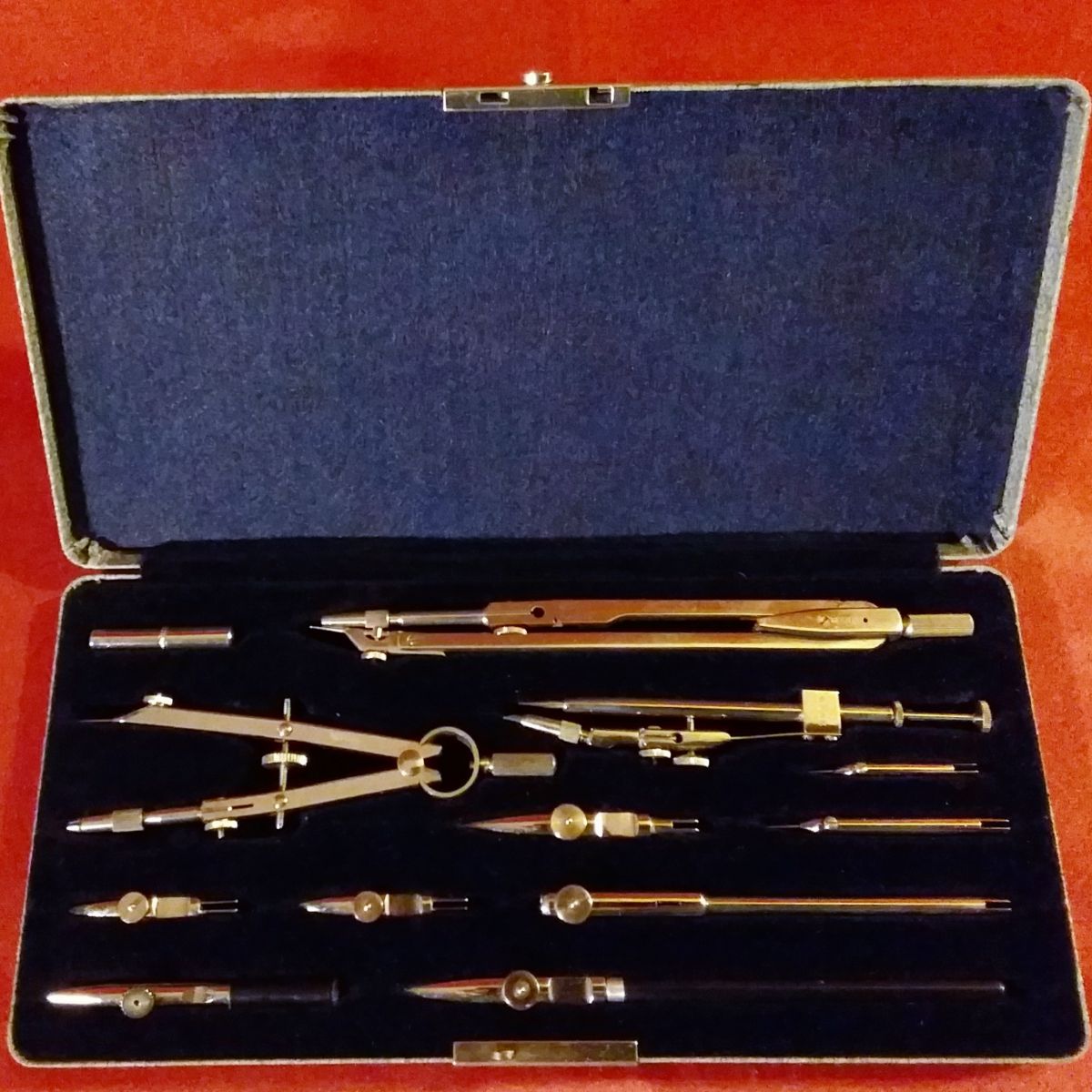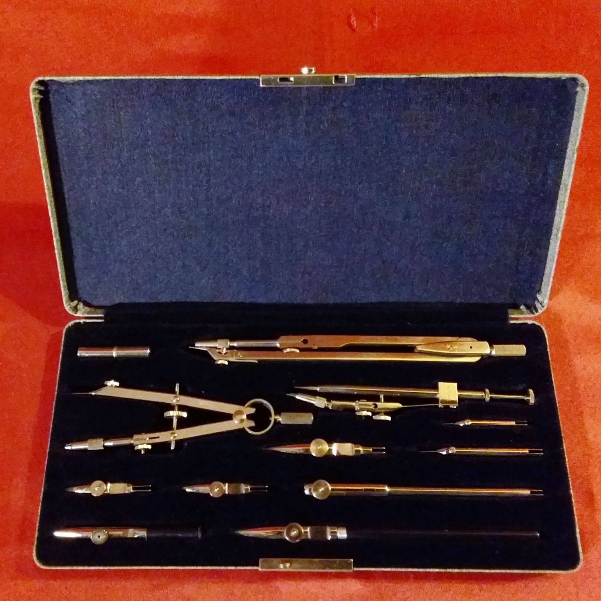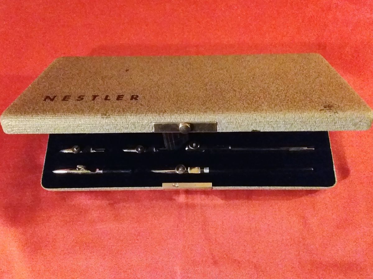 BOITE DE COMPAS 12 pièces, Nestlé Allemagne 1960,Acier Nickelé, Très bon état.