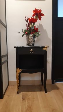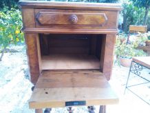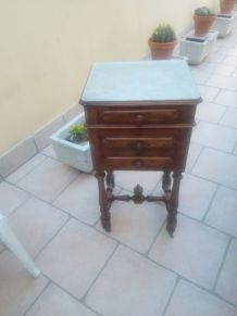 Bout de canapé en fer forgé torsadé et bois des années 60, 2 crochets sur l’un des côtés, dimensions (cm) : L.45xH.52xP.48, bon état.