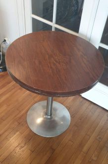Chevet en bois des années 50, pieds compas, un tiroir (bouton en métal), quelques traces d’usage normal sur le plateau absolument sans conséquence (voir photos), dimensions (cm) : L.46xH.56xP.34, bon état.