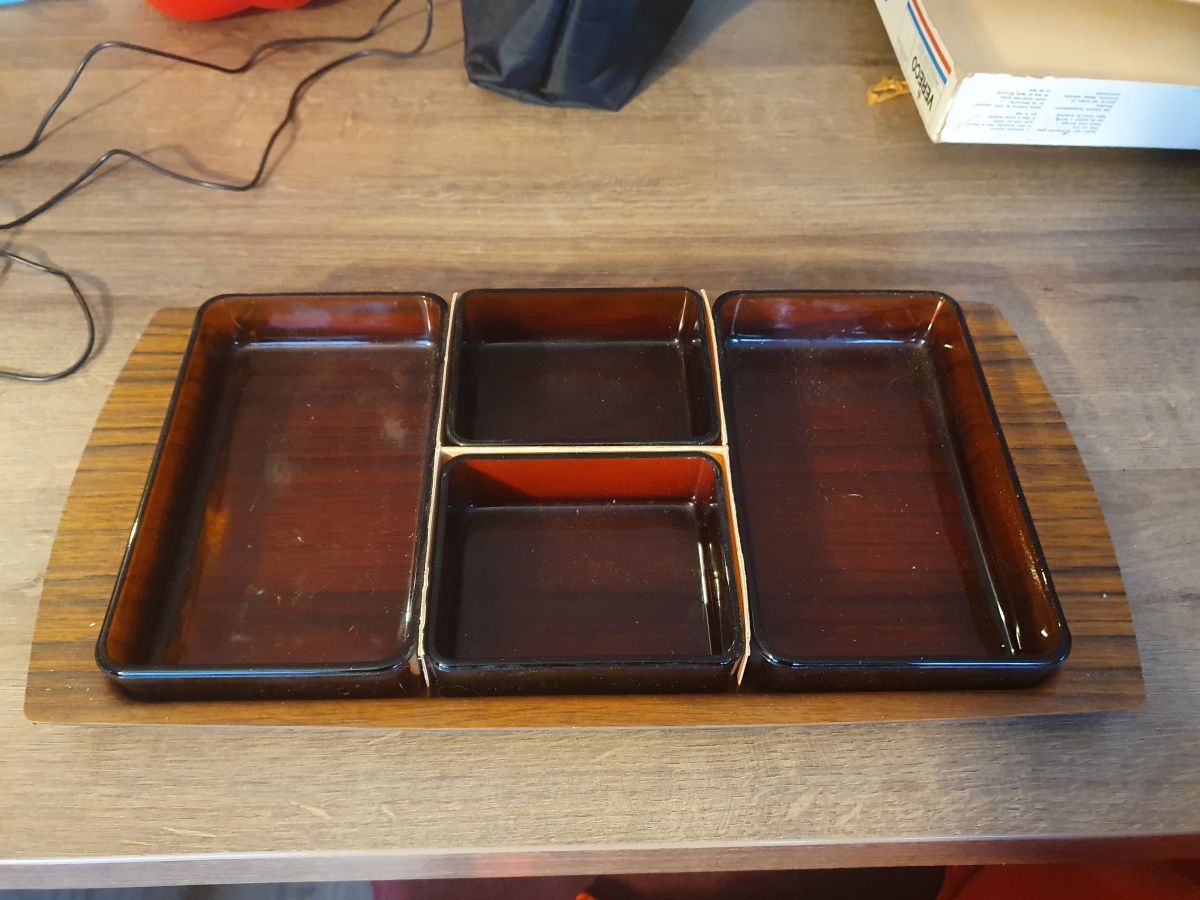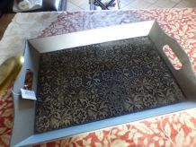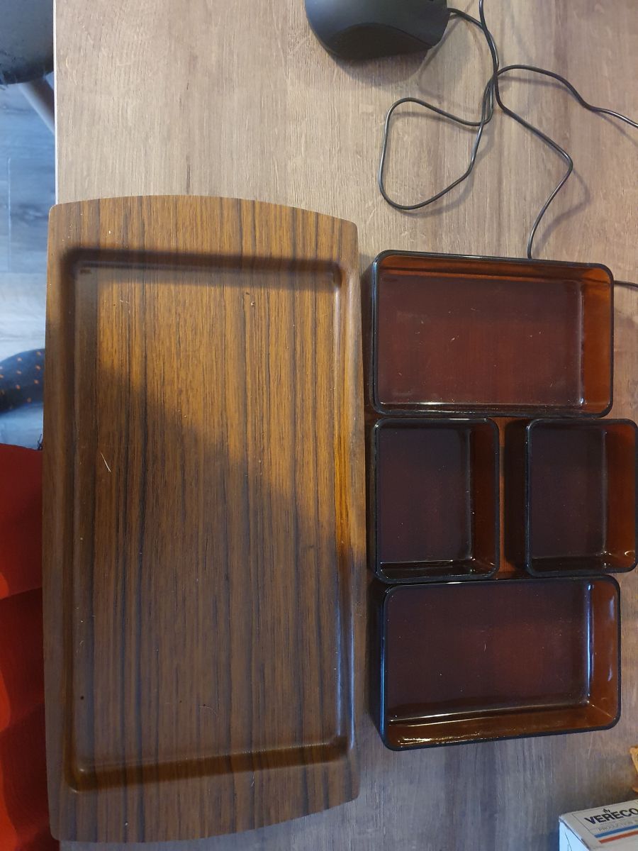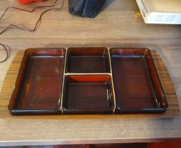 Plateau apéritif de marque Vereco en verre fumé et brun