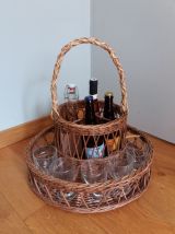 Panier apéro porte verres et bouteilles en osier