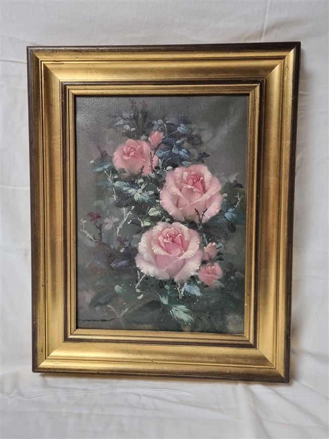 Huile sur toile, un joli bouquet de roses, signature difficilement lisible, peut-être celle de Serguei TOUTOUNOV ?