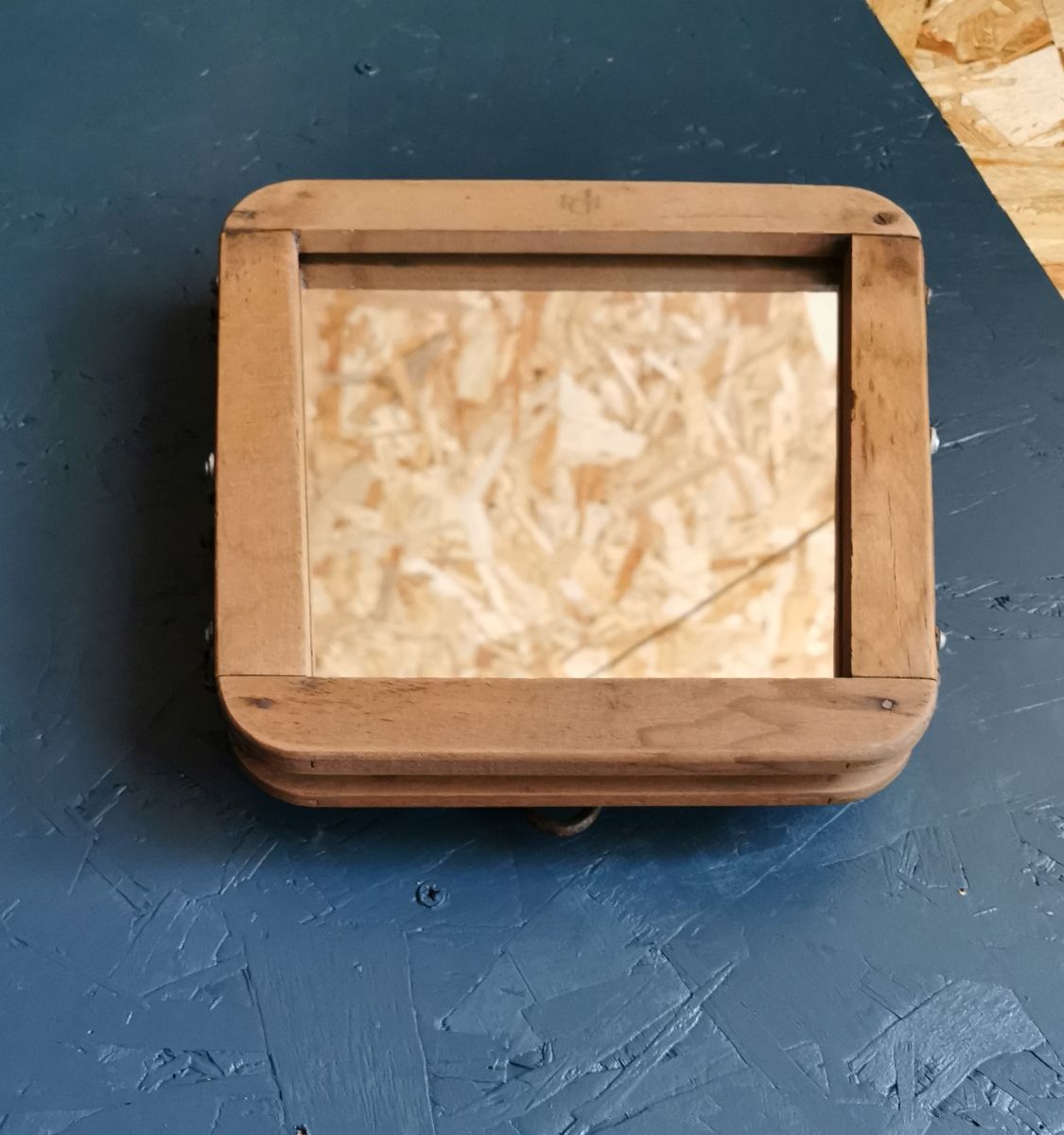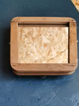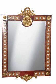 Les miroirs sont découpés et polis, sur mesure bien sûr car chaque presse a une forme différente. Ils sont préalablement encollés sur une surface plane et résistante, elle même fixée sur l'intérieur du cadre en bois avant de presser l'ensemble.