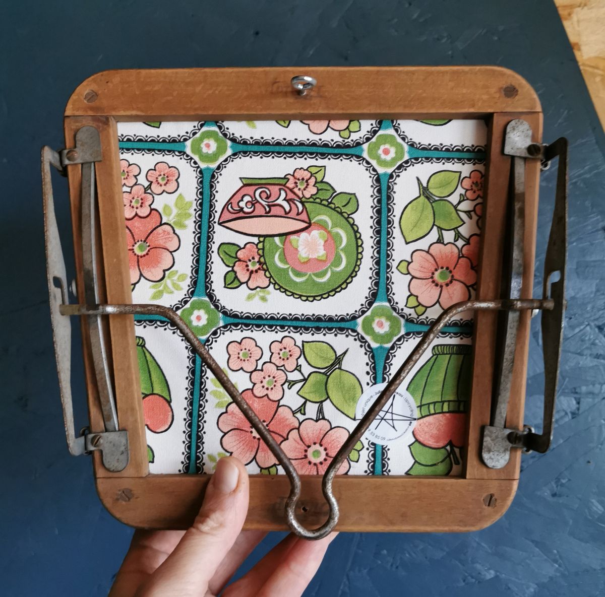 A l'arrière de la presse, décorée d'un papier peint vintage fleuri, j'ai fi