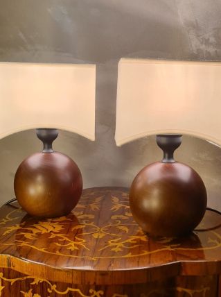 lampe de chevet design scandinave boule bois ronde 26x15 cm