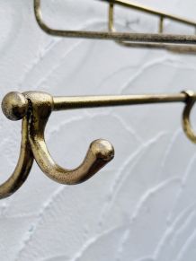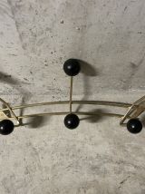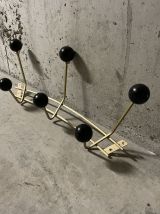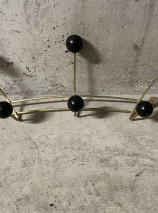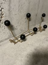 Patère 3 branches et 6 boules noires en bois peint, années 60, métal doré en parfait état, légères traces d’usage, dimensions (cm) : L.45xH.20xP.12, bon état.