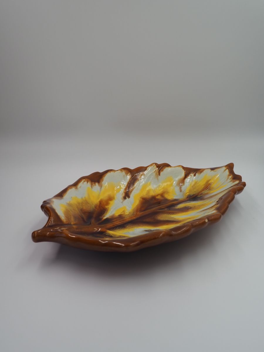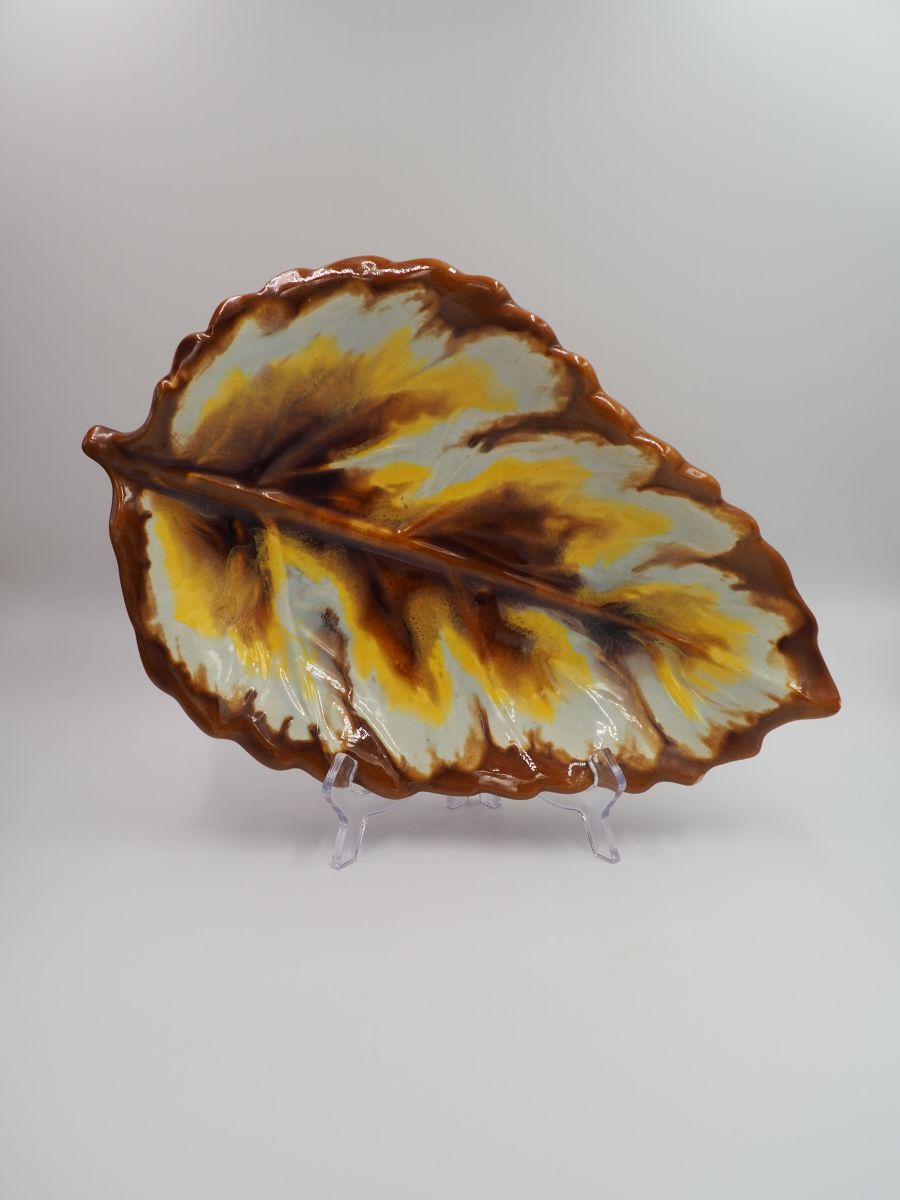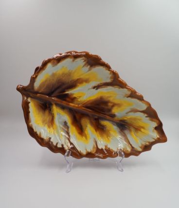 Plat ou vide poche feuille barbotine saint gille, bon état, voir photos.