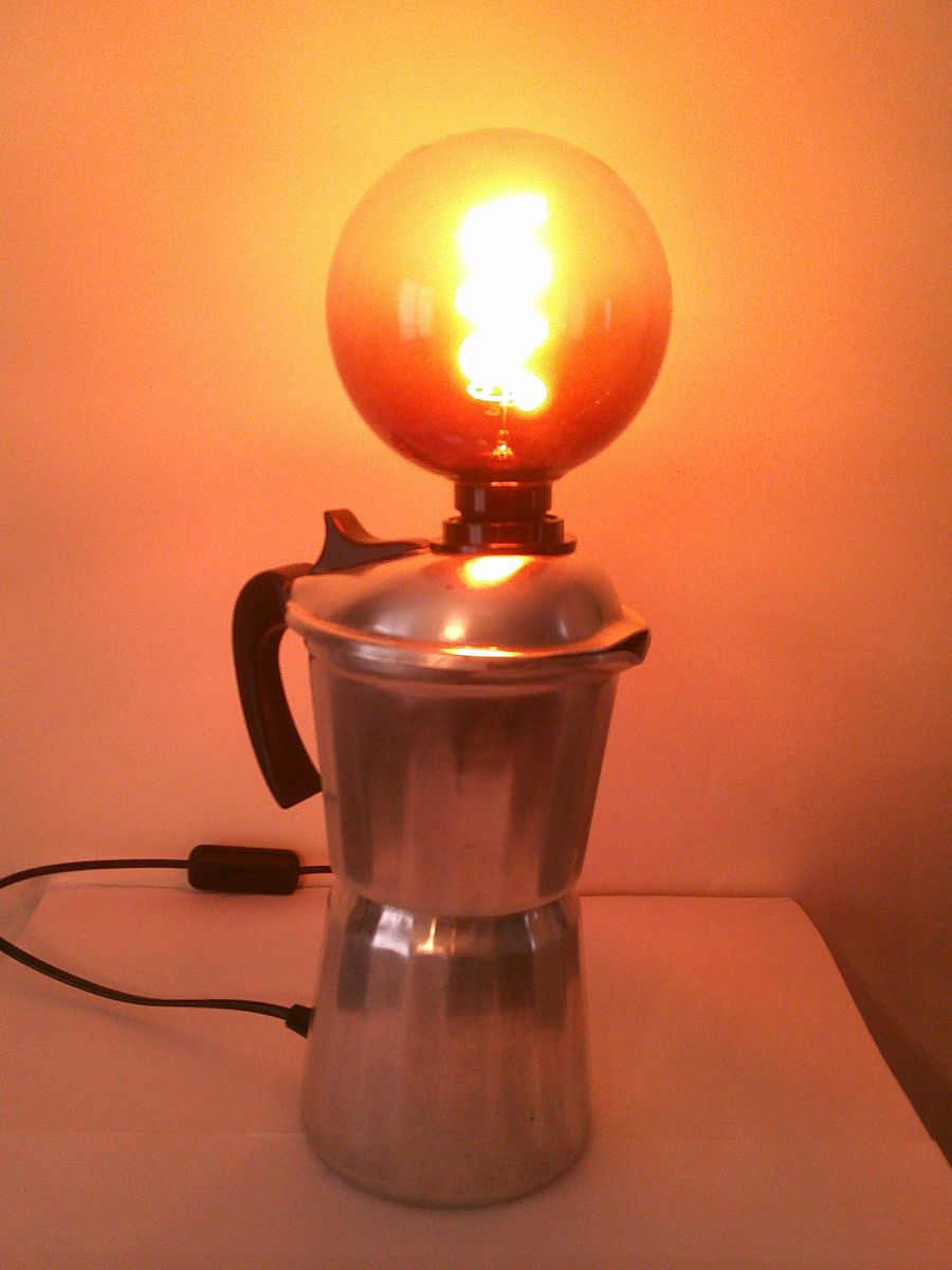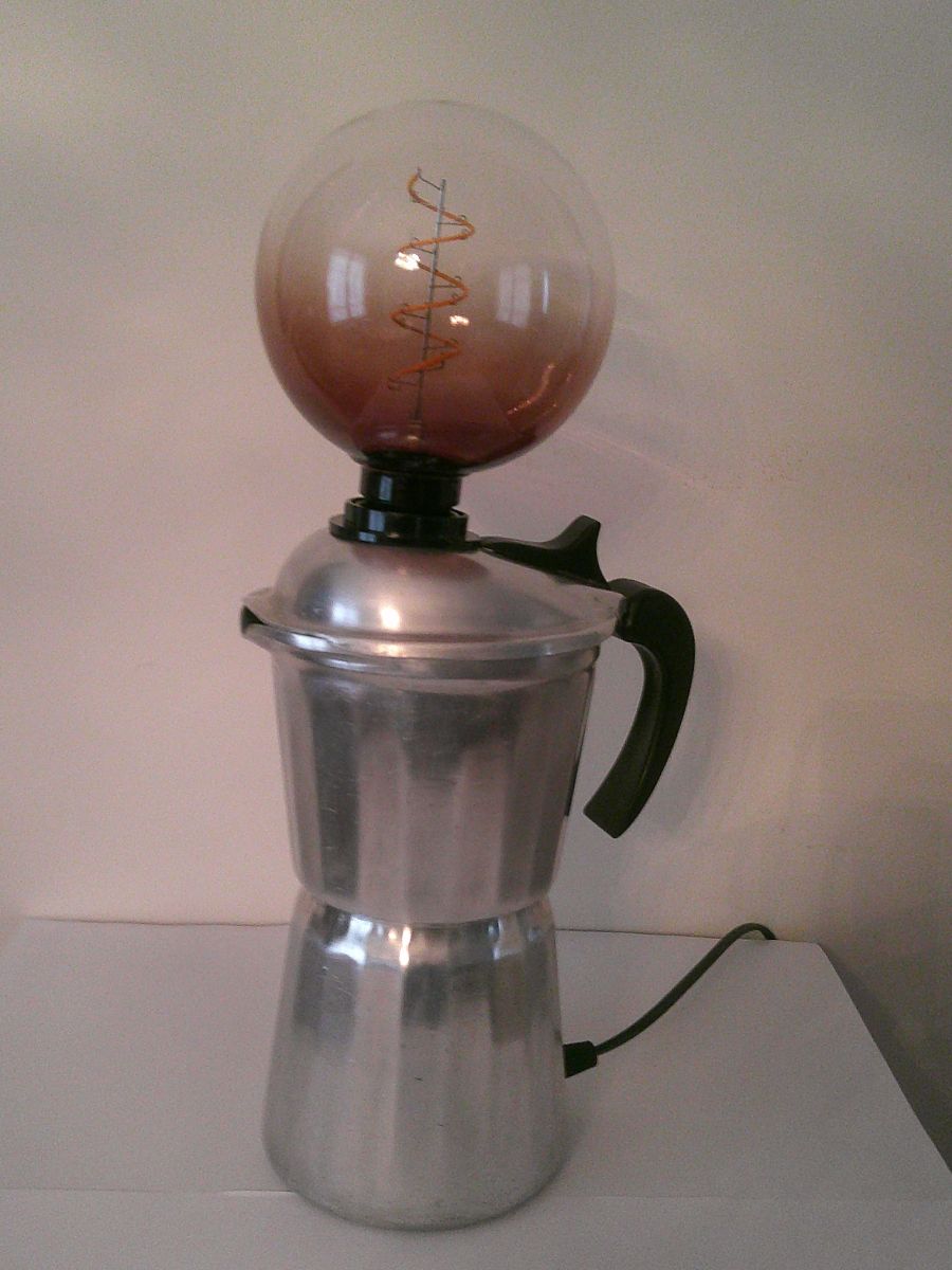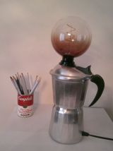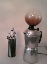 Lampe réalisée a partir d'une ancienne cafetière " SEB " en aluminium des années 60 .
