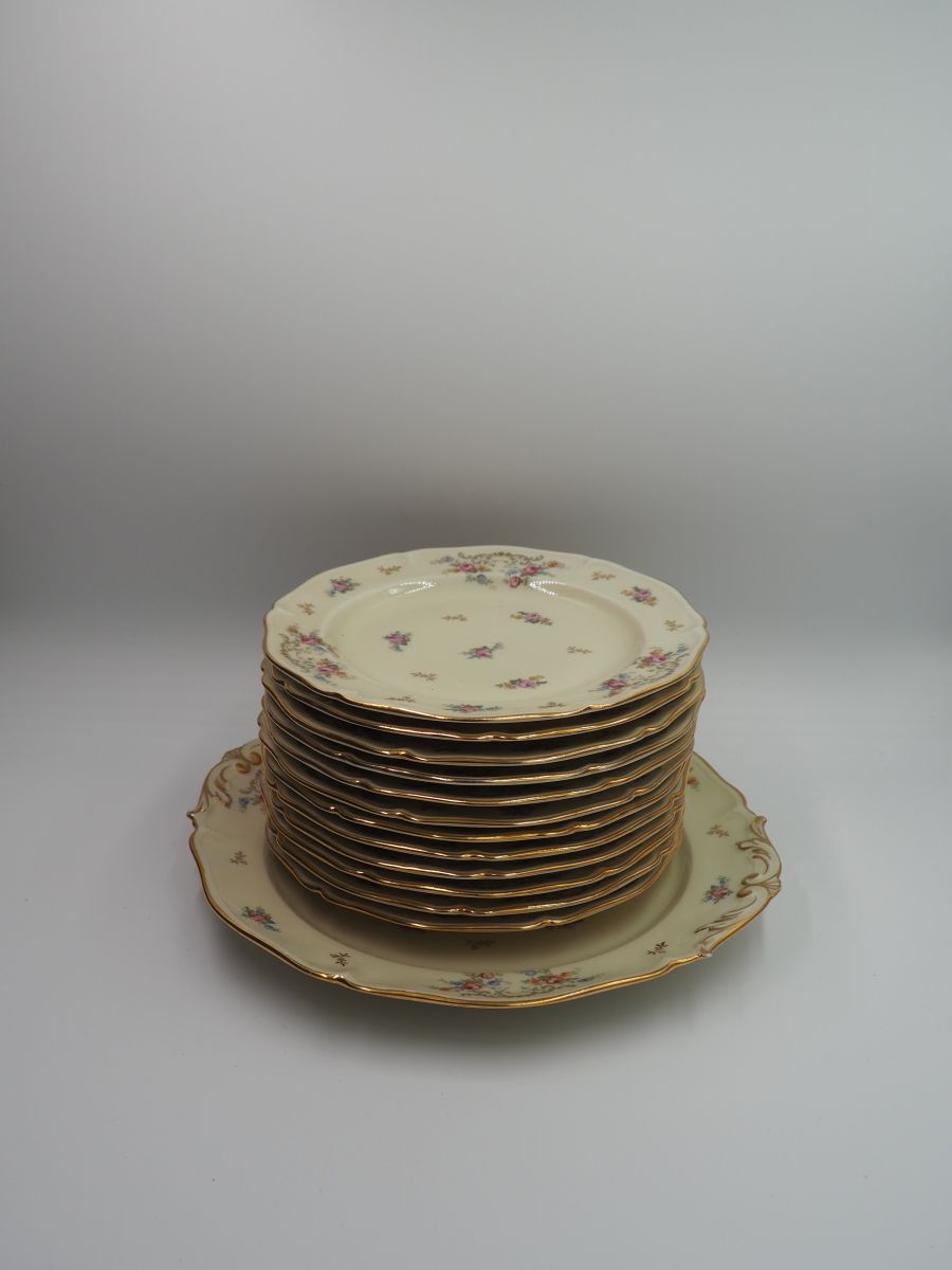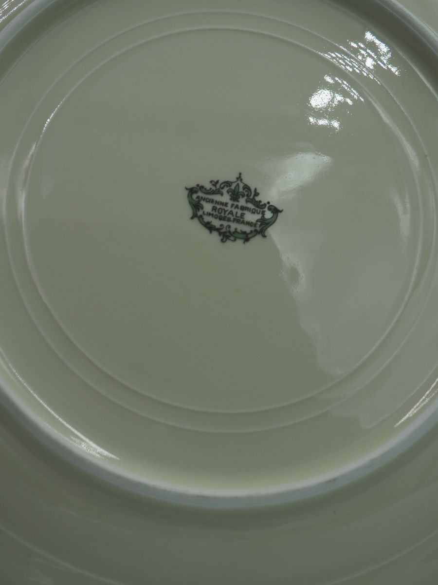 Grande assiette Ancienne Fabrique Royale Limoges France en très bon état, 12 assiettes à desserte de la même collection disponible