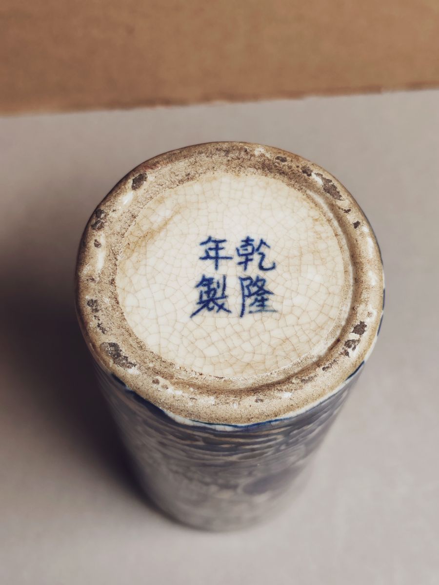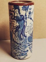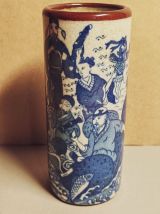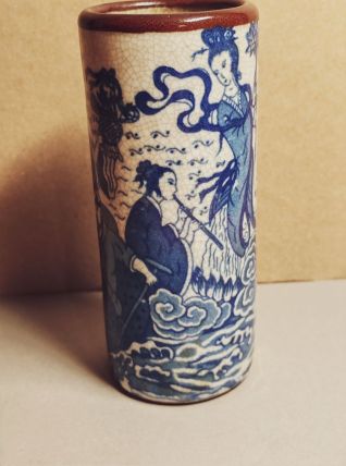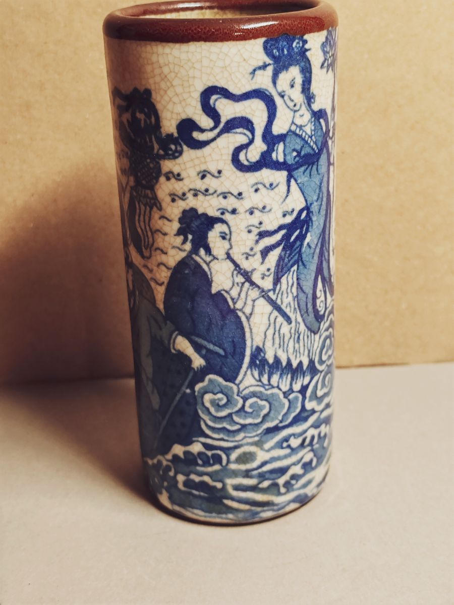 Marque : Magnifique pot a pinceaux de Chine style Dynastie Qing du 19 ième siècle: les 8 immortels traversant une rivière