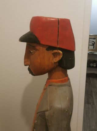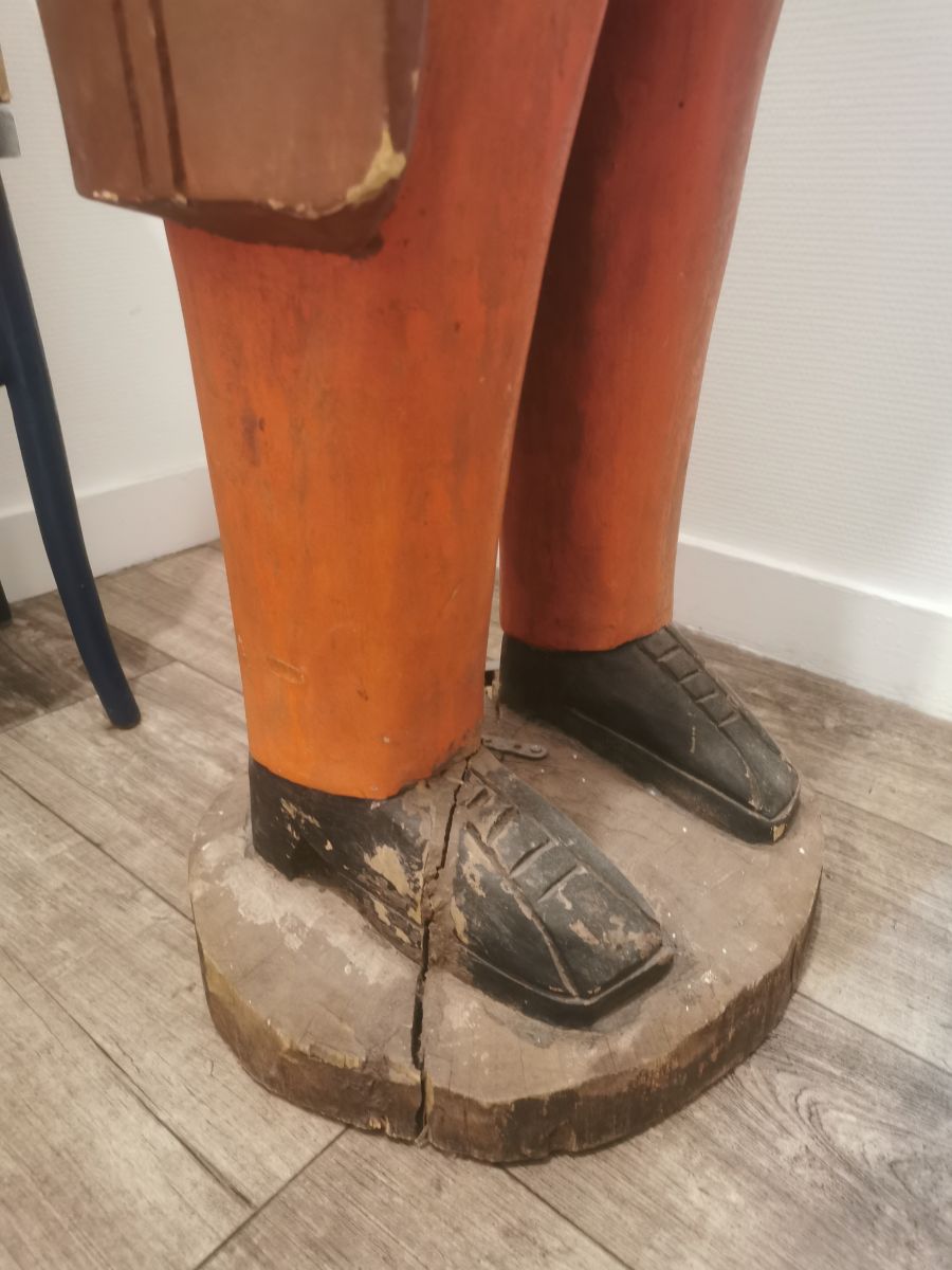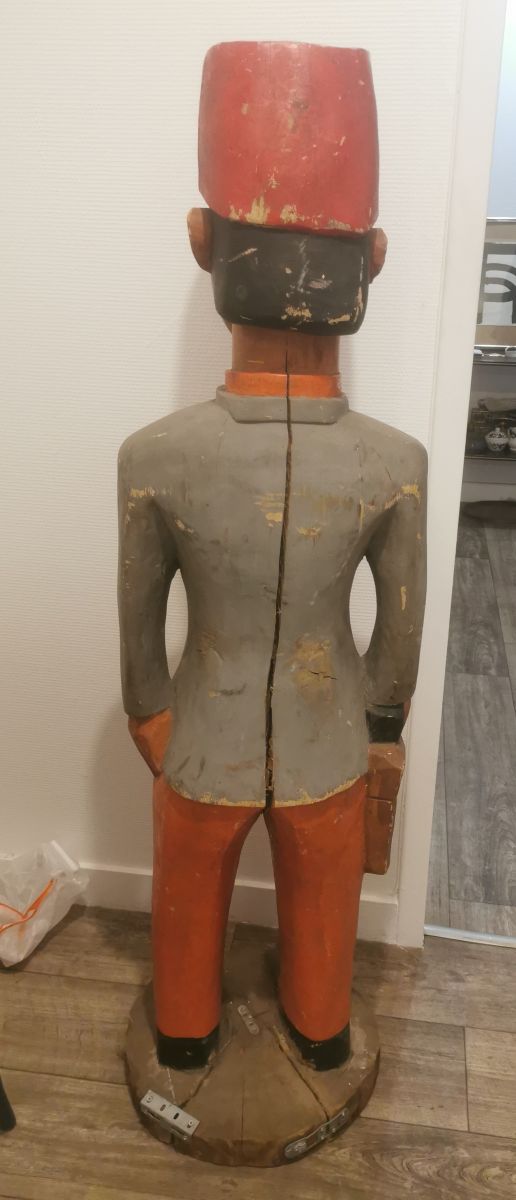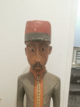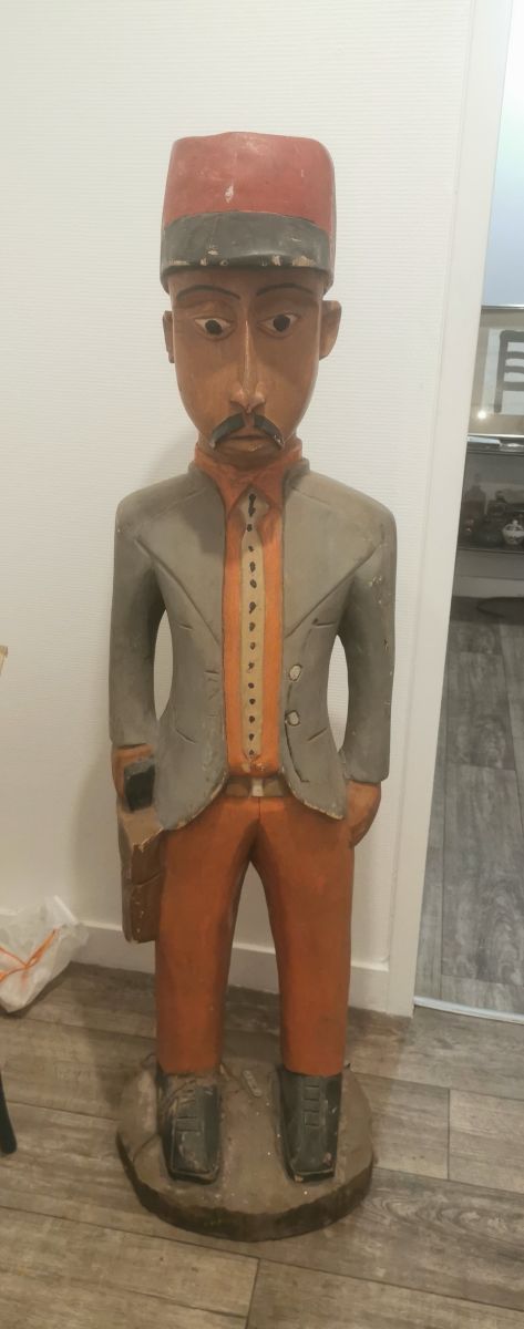 Statue colon baoulé en bois peint, sculptée a la main, représentant un fonctionnaire européen.