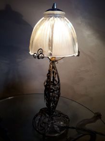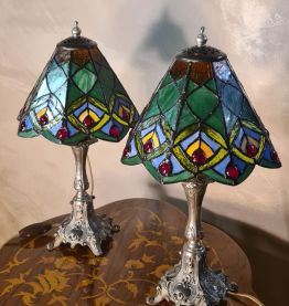 paire de lampe metal argenté art nouveau 38x20 tiffany ver