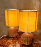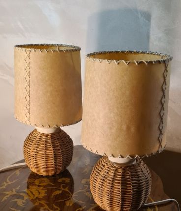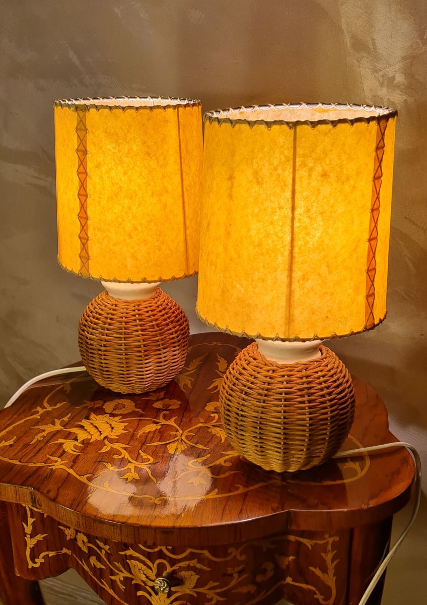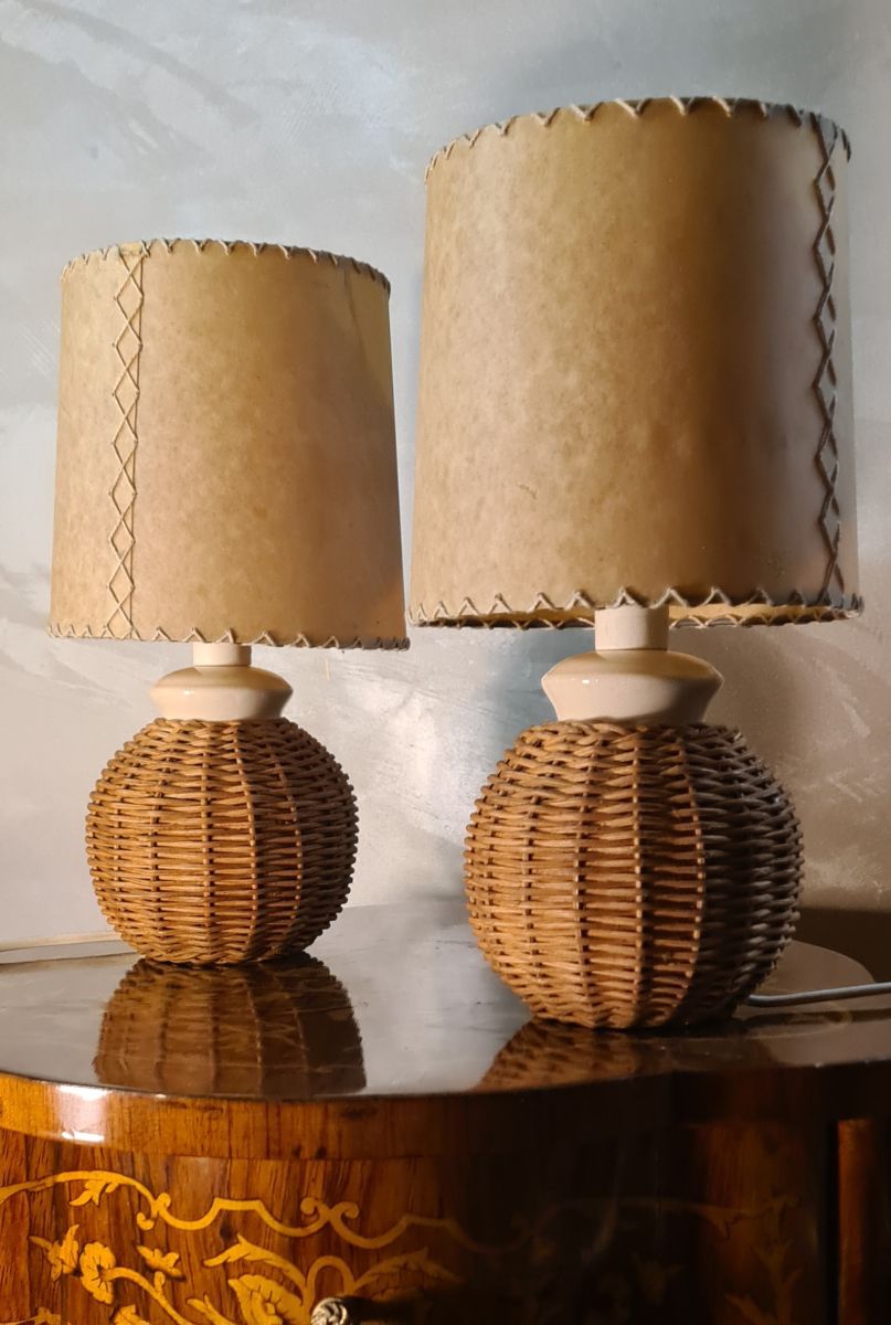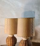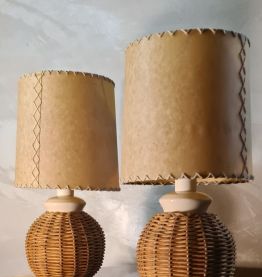 paire de lampe chevet ceram et rotin abat jour 1960 ,, elec