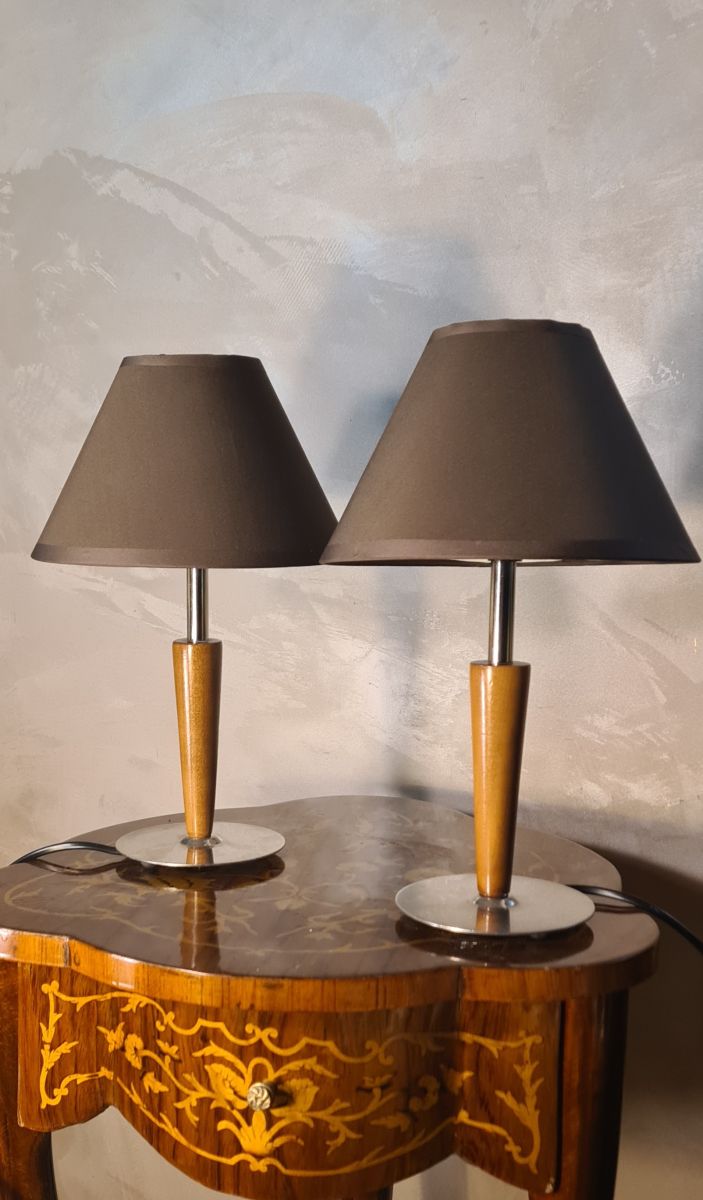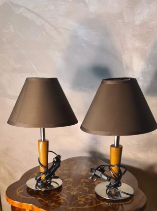 paire de lampe chevet style scandinave bois et metal argenté elec ok 30x18