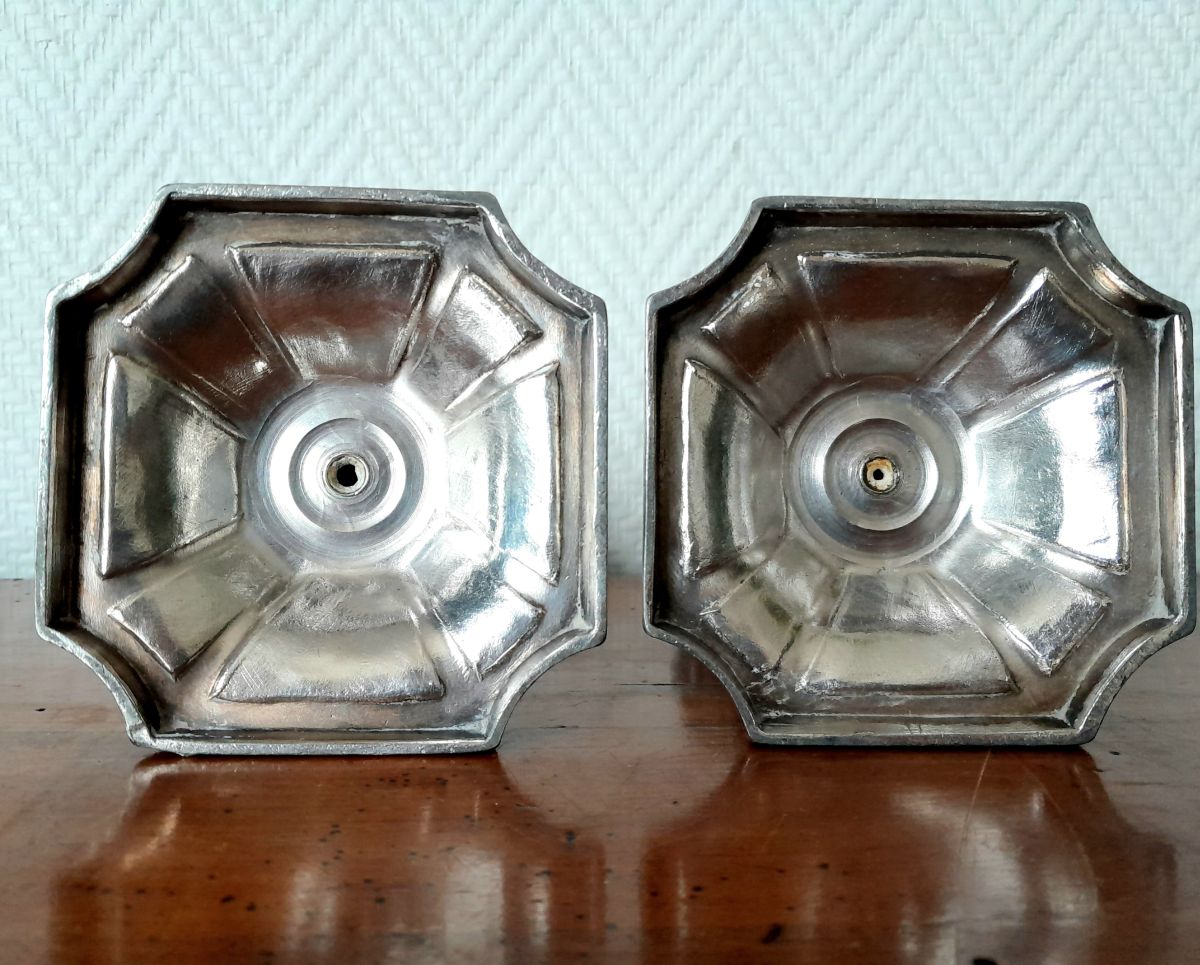 Victor SAGLIER (1809-1894). Paire de bougeoirs en métal argenté à décor