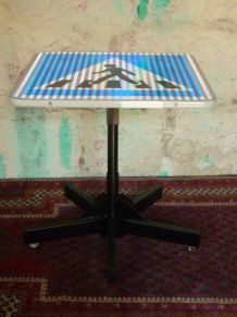 Petit chevet des années 60 en aggloméré et placage, 1 tiroir, pieds fuseaux, quelques traces d’usage, un saut de plaquage sur l’arête arrière (voir photos), dimensions (cm) : L.40xH.54xP.30.